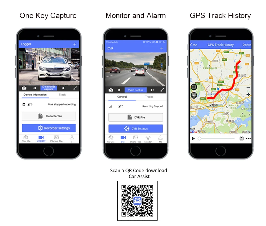 Удаленное приложение для помощи автомобилю, проверка просмотра на зеркале dvr с помощью смартфона. Держите серфинг в Интернете и удаленный контроль пути вождения автомобиля. Загрузите важные видео и один ключ, чтобы поделиться красотой вождения автомобиля.