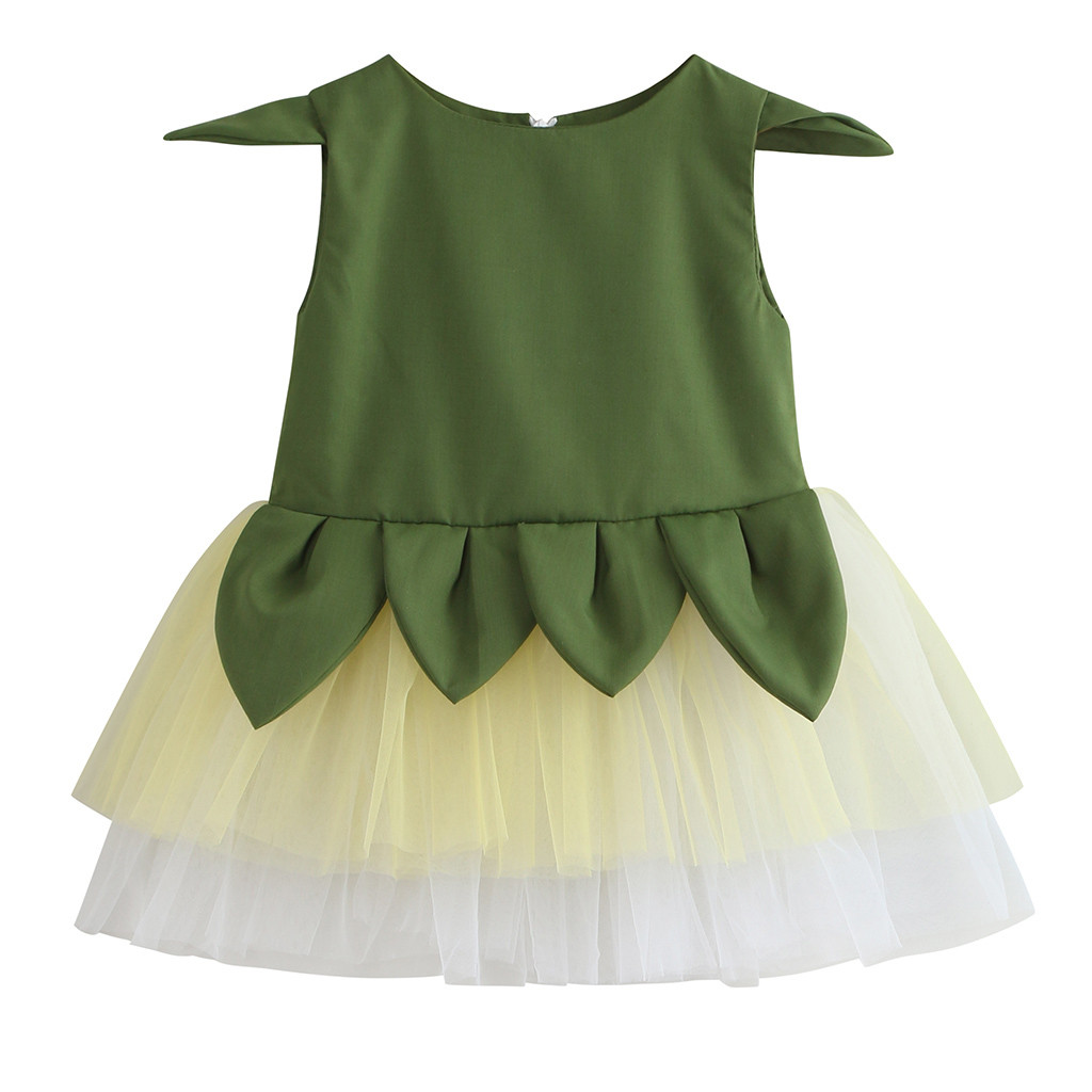 Двухслойное платье принцессы из фатина для маленьких девочек; Одежда с листьями