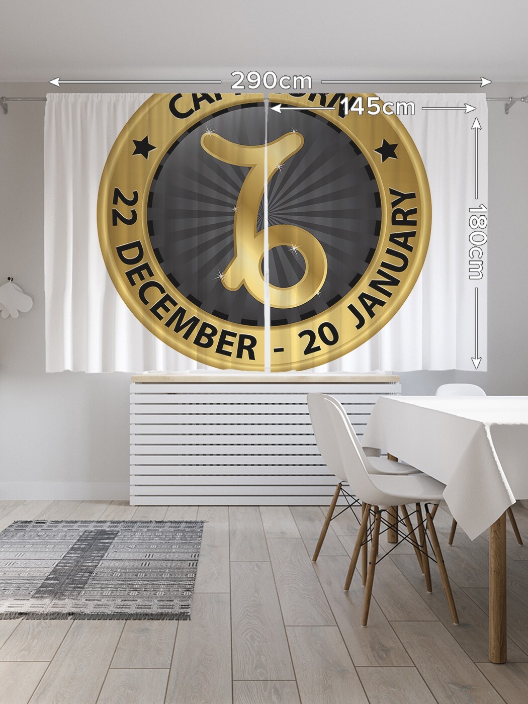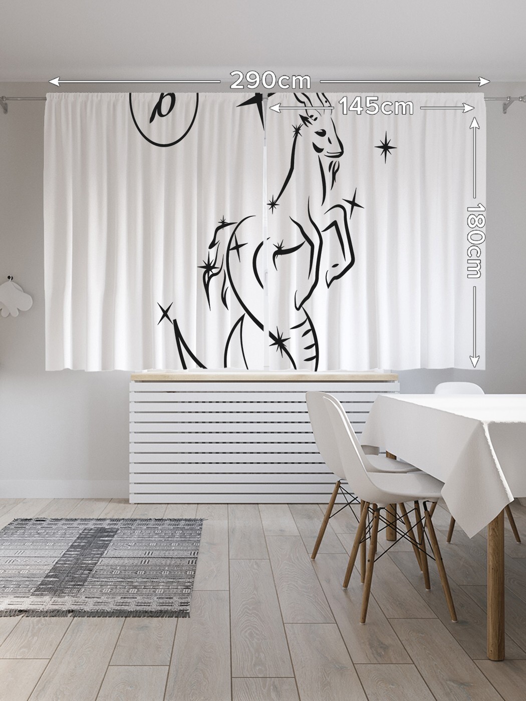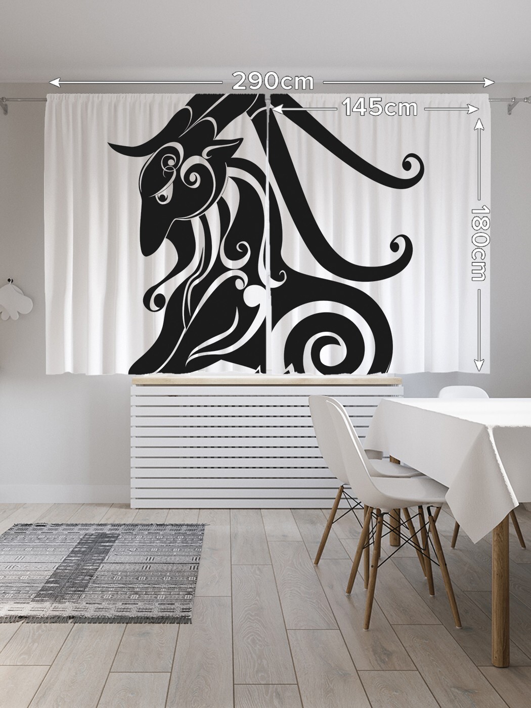 Применяя для пошива современных штор на кухню ткань с рельефной структурой «Oxford» и нанесенными способом сублимационной печати несмываемыми принтами, производитель обеспечил их нарядный вид и уникальные эксплуатационные свойства. Они прочны, почти не мнутся и отлично стираются без усадки и последствий для рисунка. Традиционный укороченный формат комплекта из двух штор высотой 180 и шириной 145 см позволит с успехом применить эти изделия не только на кухне, но также в детской или спальне вашего дома. При заказе следует учитывать, что реальная яркость и оттенок рисунка на шторах может несколько отличаться от изображения на экране вашего ноутбука или смартфона, а допустимое технологическое отклонение размеров полотна составляет 5 см. Изделия подшиты шторной лентой и комплектуются крючками.