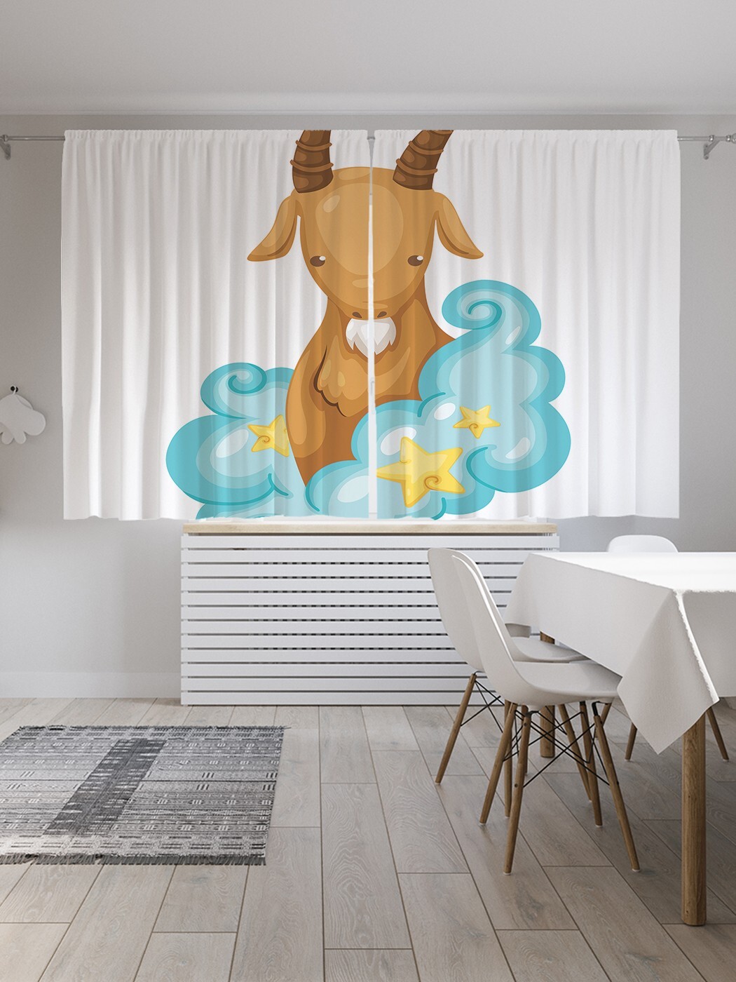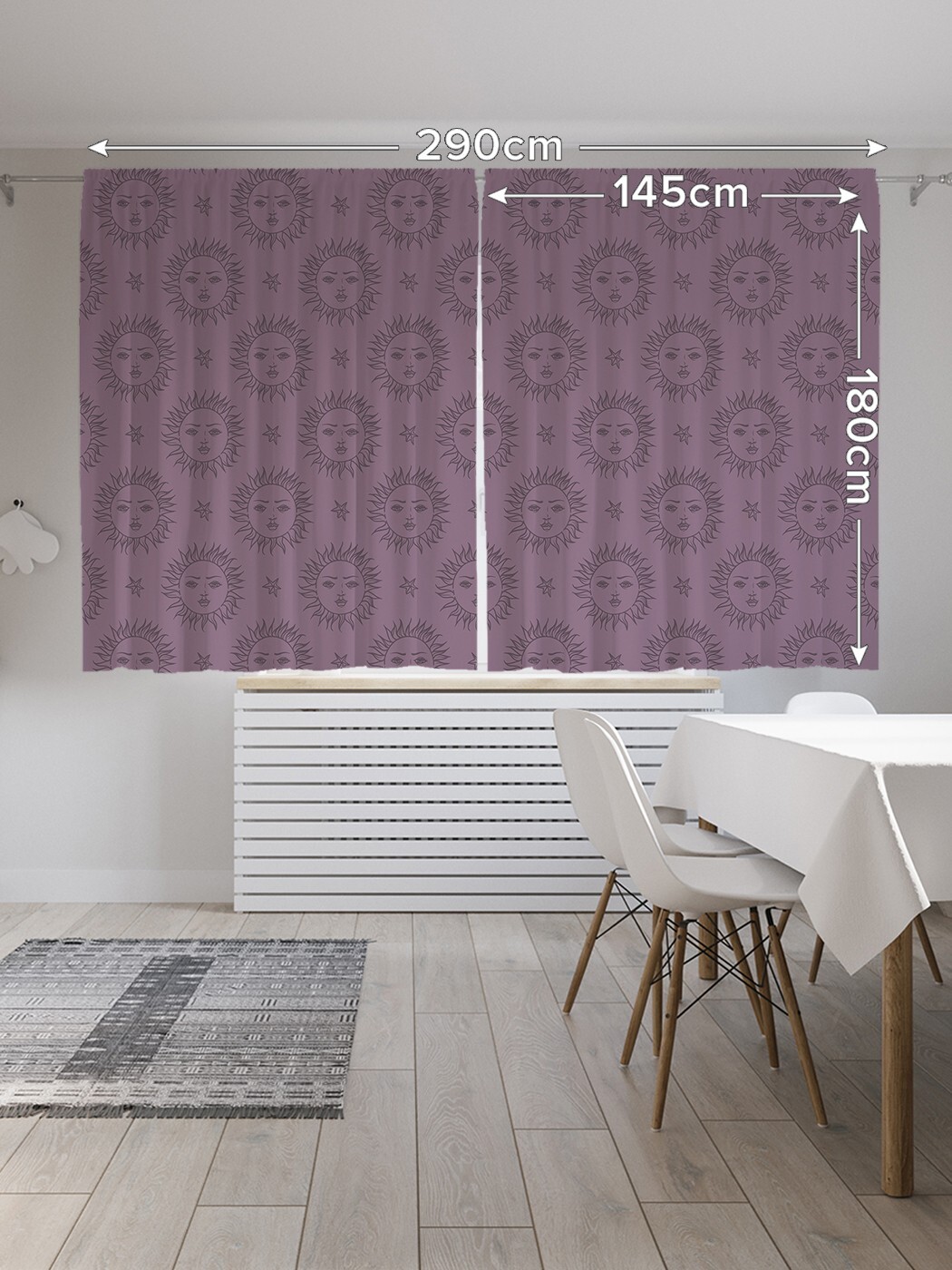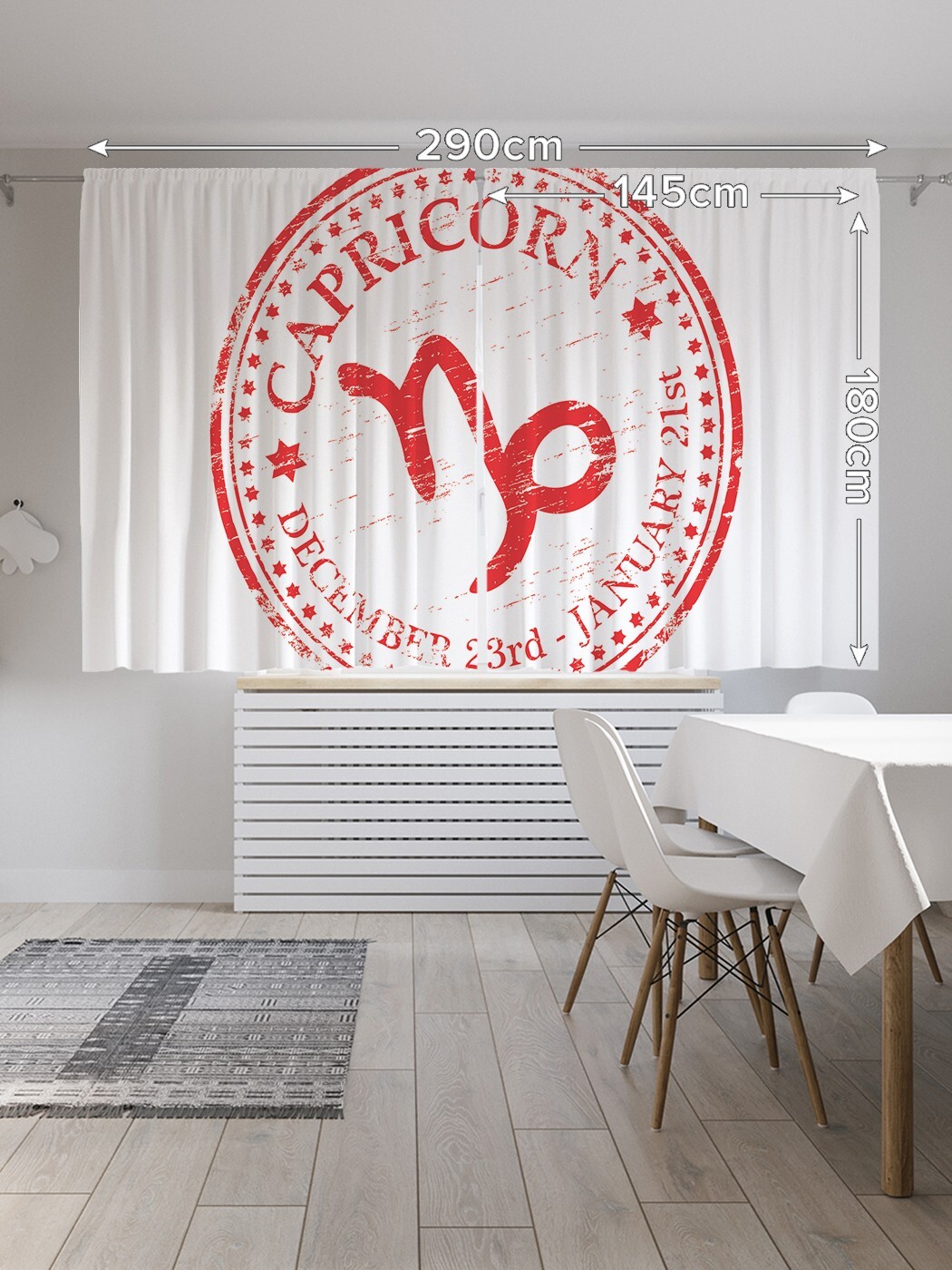 Применяя для пошива современных штор на кухню ткань с рельефной структурой «Oxford» и нанесенными способом сублимационной печати несмываемыми принтами, производитель обеспечил их нарядный вид и уникальные эксплуатационные свойства. Они прочны, почти не мнутся и отлично стираются без усадки и последствий для рисунка. Традиционный укороченный формат комплекта из двух штор высотой 180 и шириной 145 см позволит с успехом применить эти изделия не только на кухне, но также в детской или спальне вашего дома. При заказе следует учитывать, что реальная яркость и оттенок рисунка на шторах может несколько отличаться от изображения на экране вашего ноутбука или смартфона, а допустимое технологическое отклонение размеров полотна составляет 5 см. Изделия подшиты шторной лентой и комплектуются крючками.