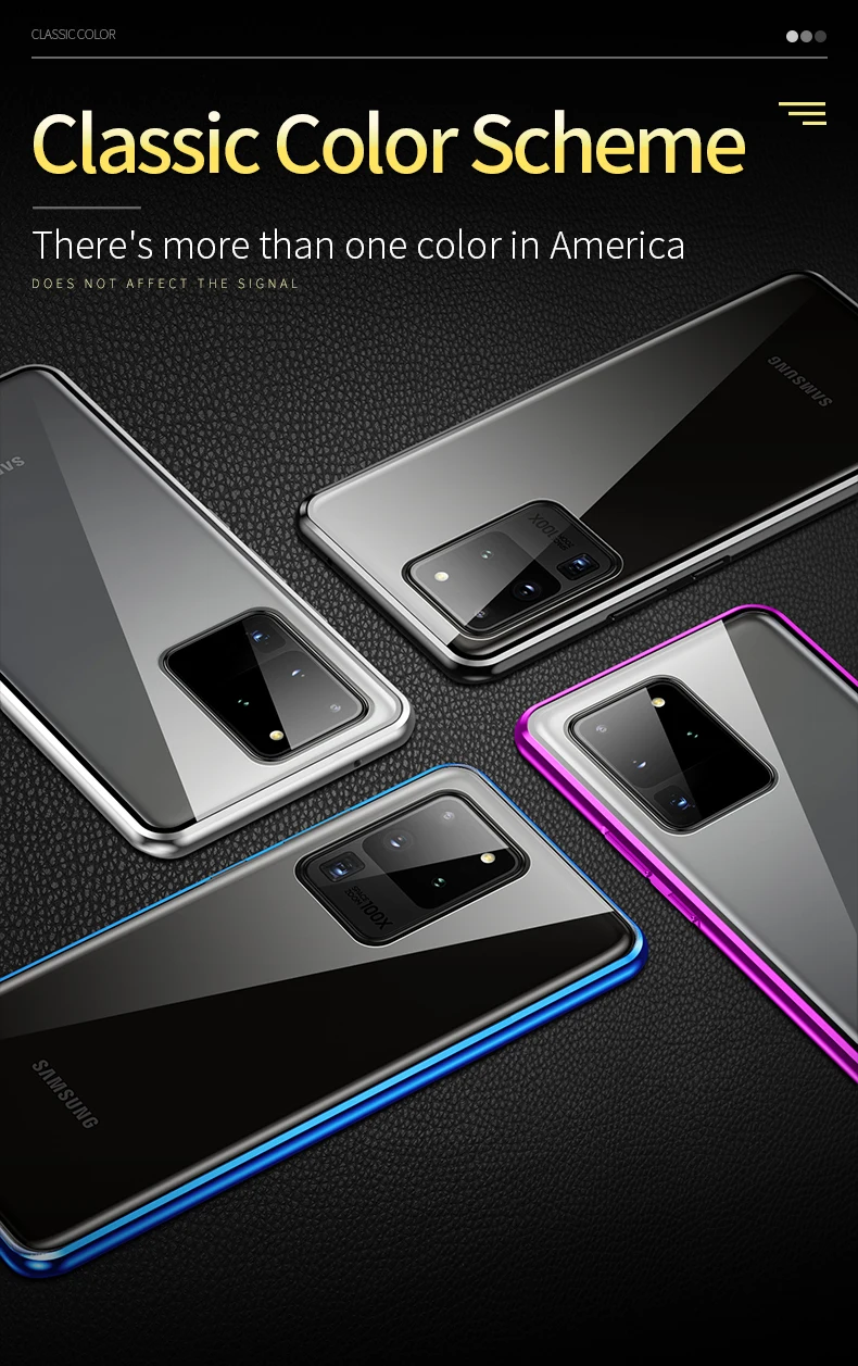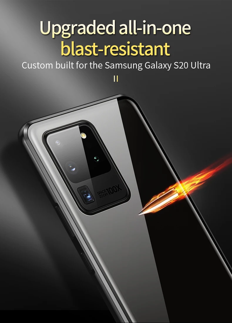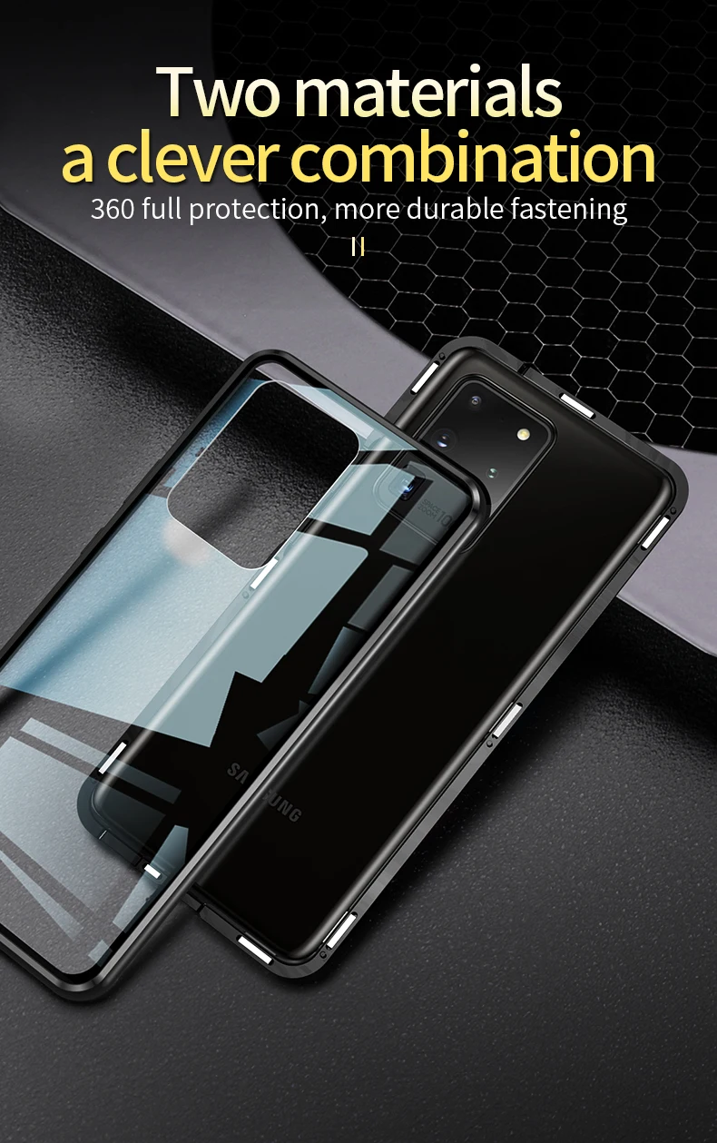 Двухсторонний стеклянный (Передний + черный) металлический магнитный чехол дляSamsung Описание: