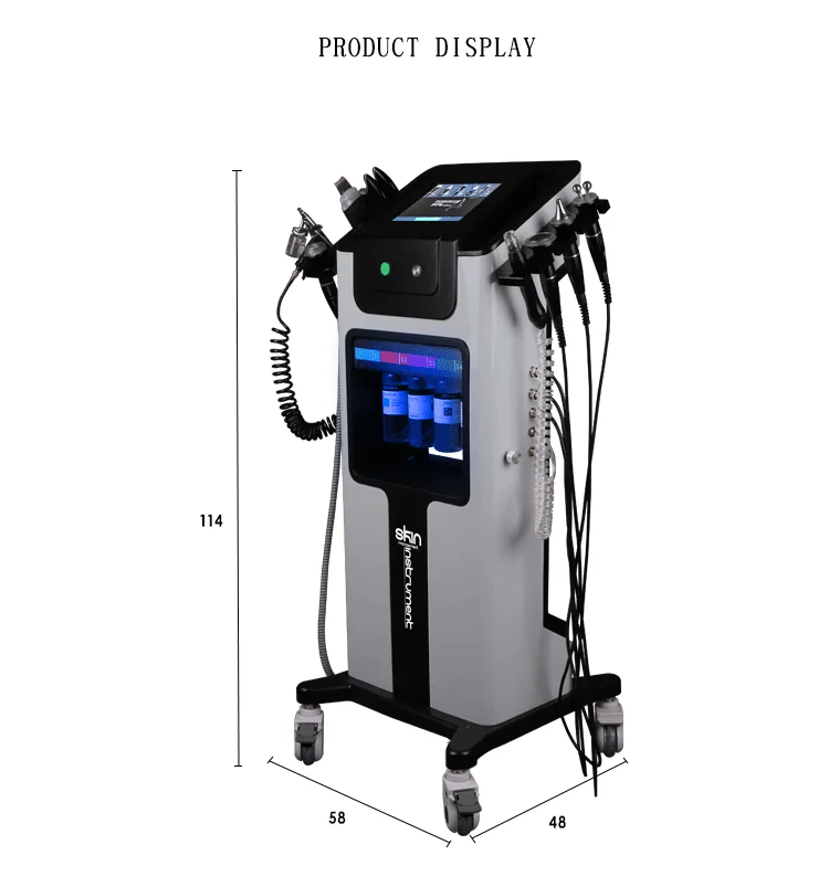 1.The original 8inch screen has been updated into 10 inches 2.The machine adds the contour head compared to the original one 3.Cool&warm hammer is updated into plug in and out mode 4.machine with four bottles for different solutions for choice 5.Touch screen with slide function
