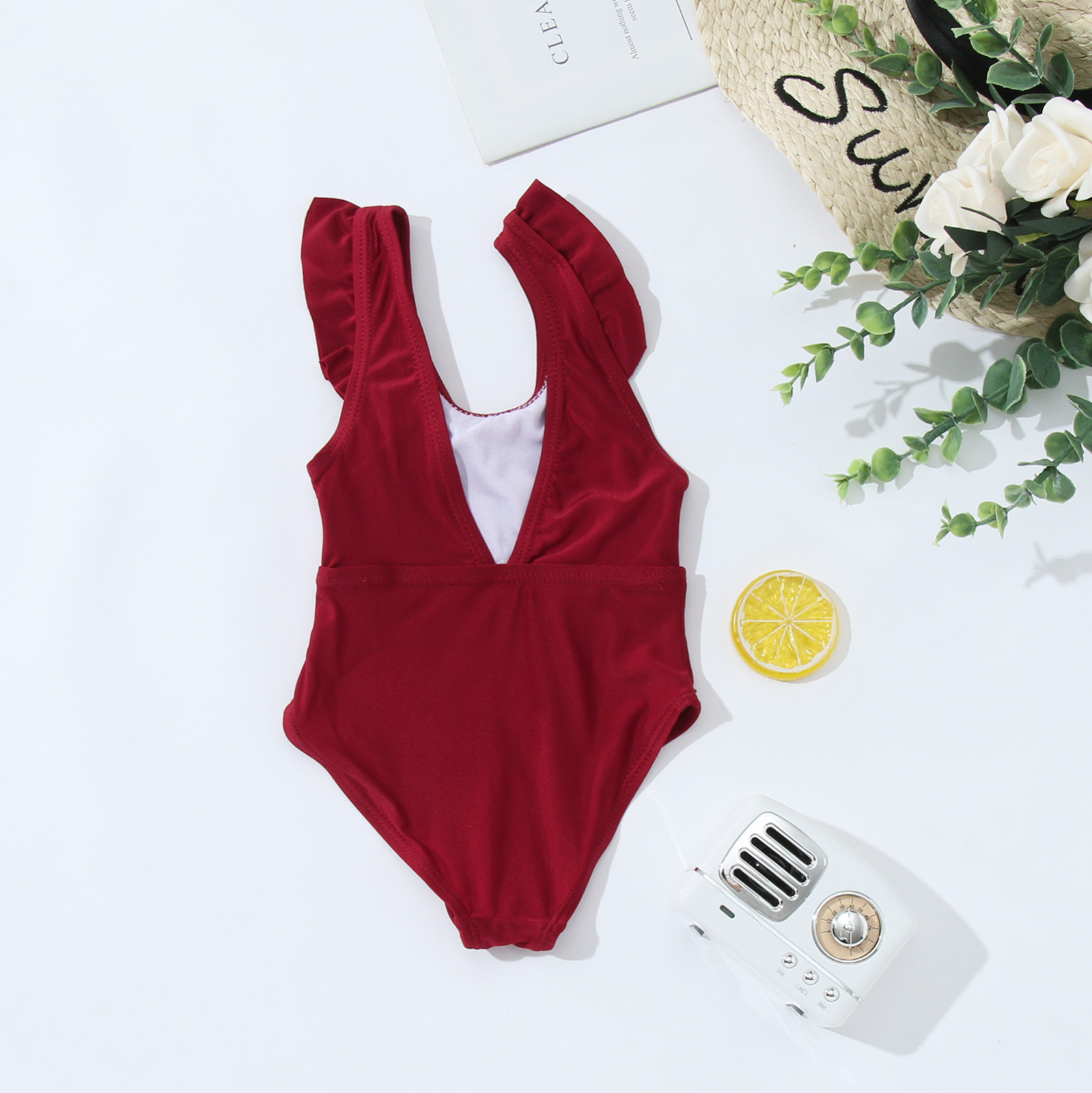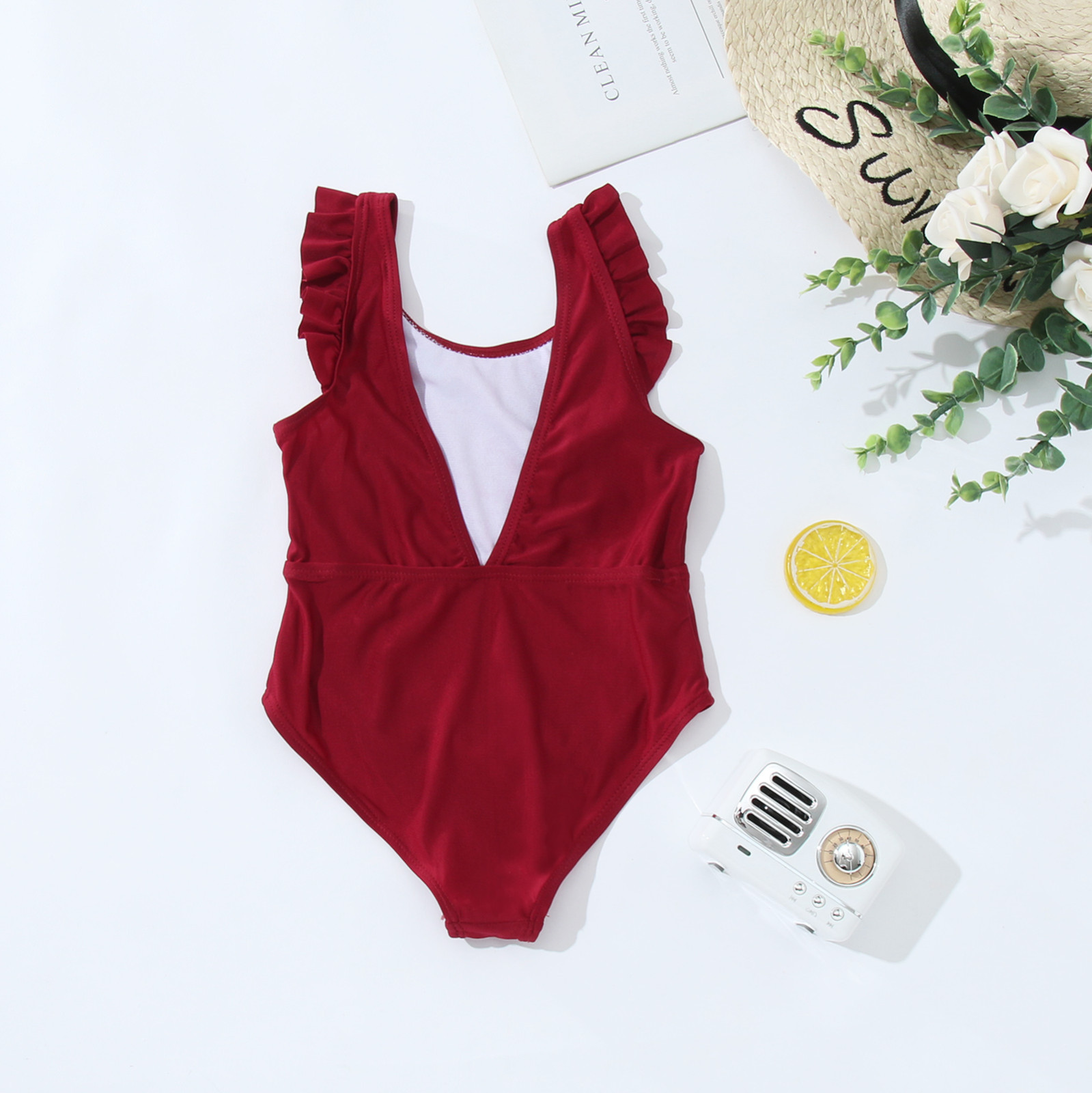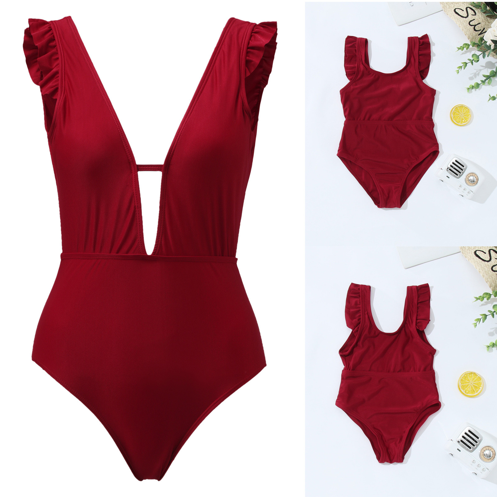 Купальный костюм для родителей и детей, Одноцветный купальник-бикини с принтом ананаса, Цельный купальник-бикини