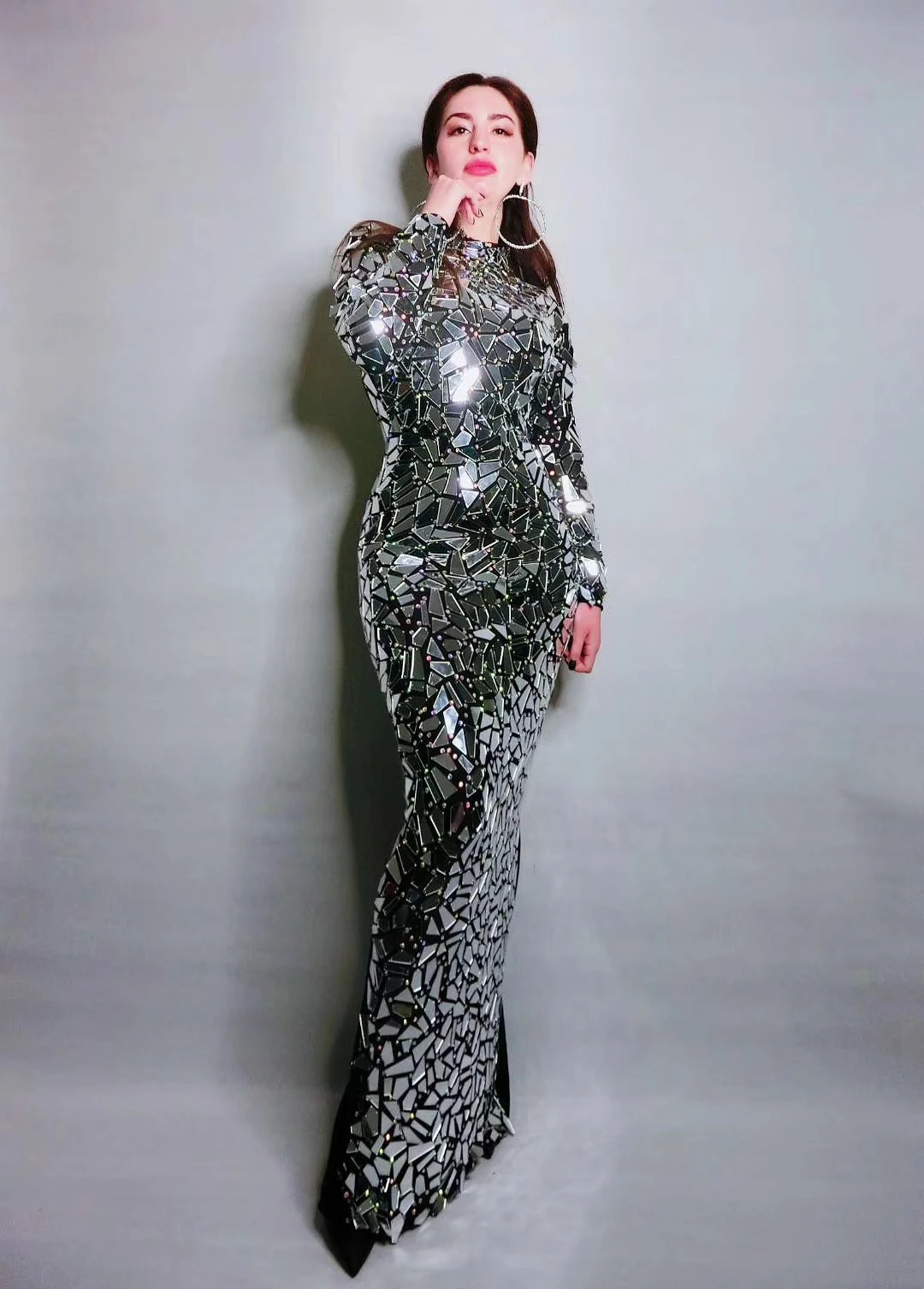 Дизайнерские женские вечерние платья для выпускного вечера, для дня рождения, праздника вечерние платье со шлейфом платье с цельным блестящим зеркала Стразы Длинные платья Черный сценический костюм