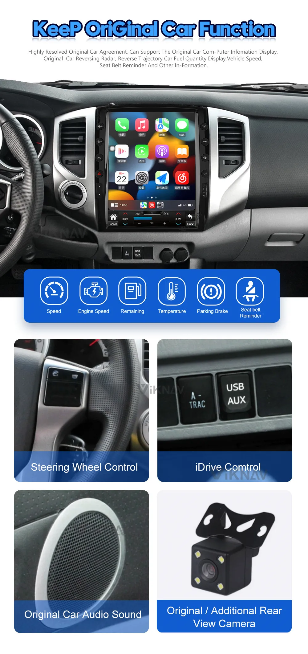О нас:VIKNAV является одним из ведущих китайских профессиональных производителей систем автомобильных мультимедийных плееров. Мы фокусируемся на разработке, производстве и маркетинге различных автомобильных мультимедийных проигрывателей и т. д. Наша продукция продается дома и за рубежом. VIKNAV-Высокотехнологичная компания, специализирующаяся на исследованиях, производстве и продаже автомобильного мультимедиа, gps-навигаторов и бытовой электроники.