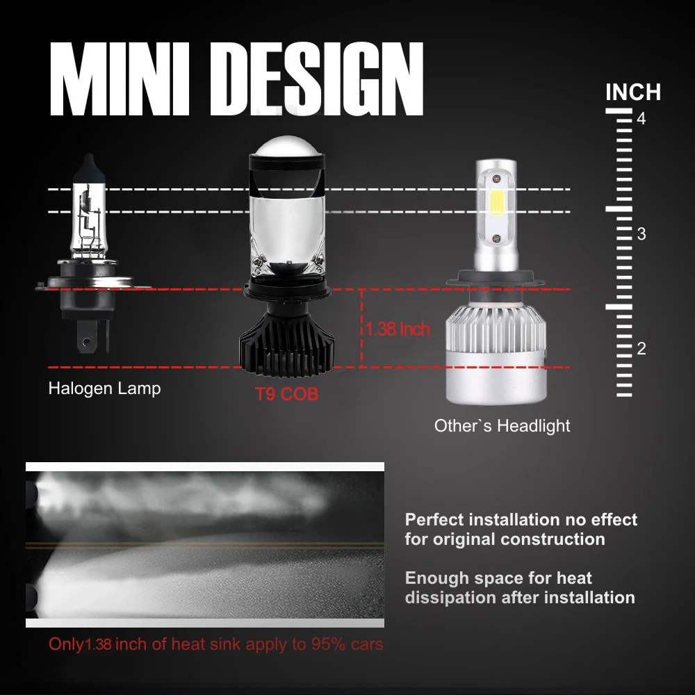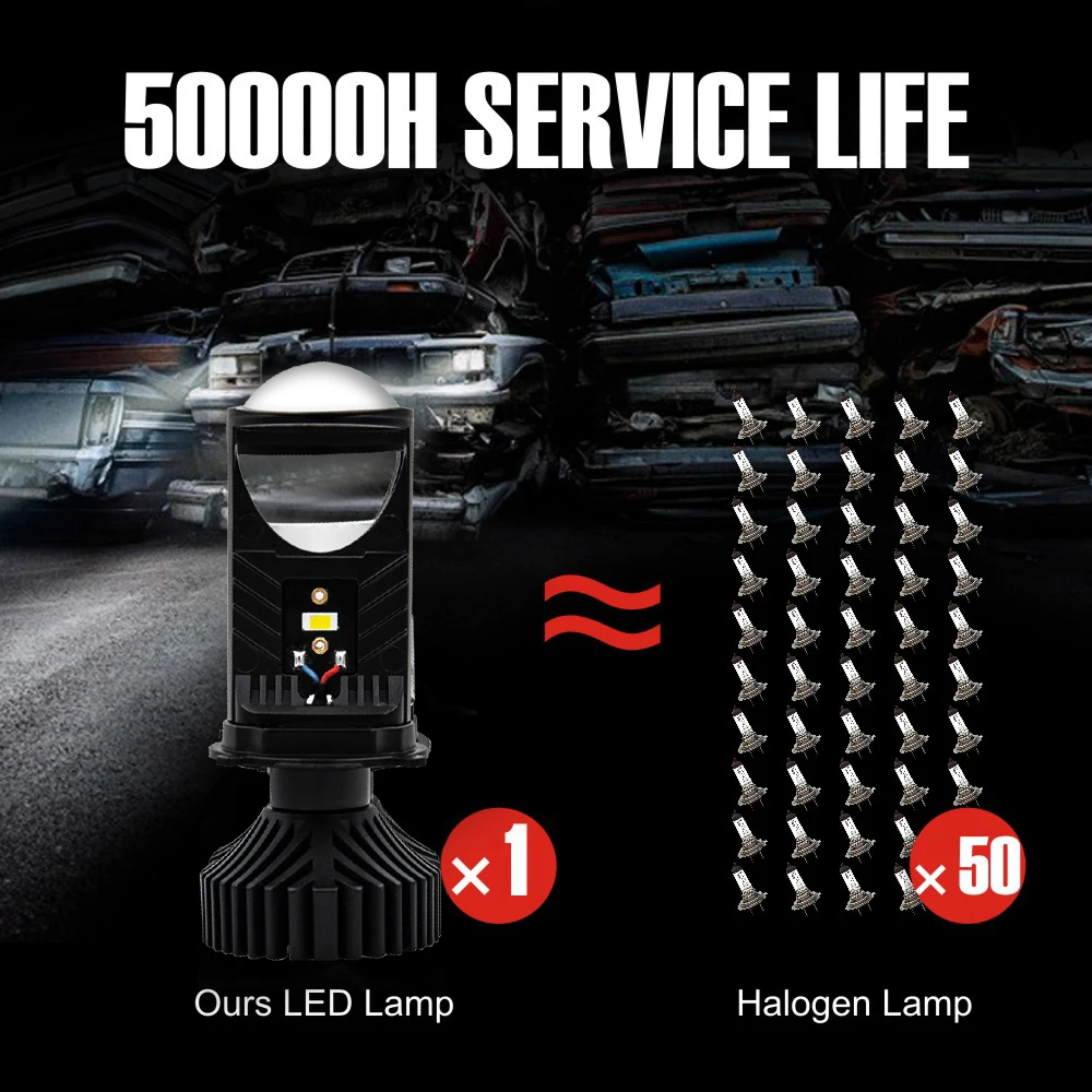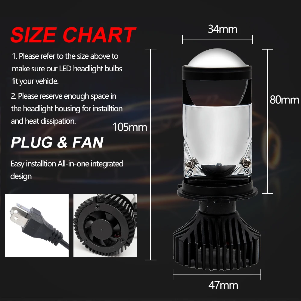 2.H4 LED Lens Headlight bulb, Newest CSP LED chips (Double-sided) Producing great output per set for safety driving at night, xenon white, far more than the halogen lamp.