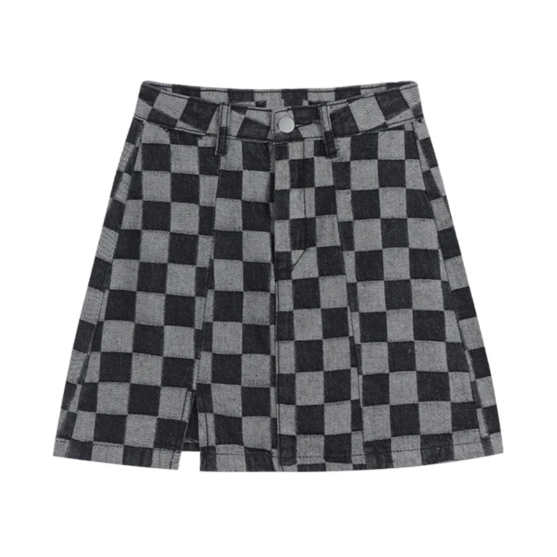 Женская клетчатая юбка с высокой талией трапециевидная сетчатая Юбка До Колена