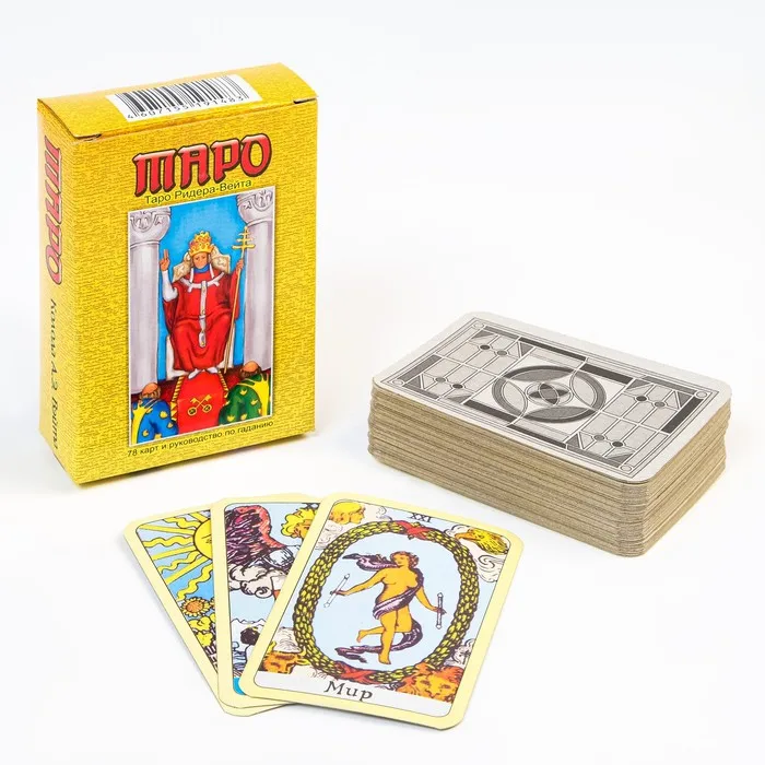 Карты Таро "Ридер-вэйта". В колоде представлены 78 гадальных карт с прямыми и перевернутыми значениями, а также инструкция. Эти гадальные карты Таро были разработаны тарологом каббалистом с 20-ти летним стажем и сделаны таким образом, чтобы вам было максимально комфортно читать значения и приоткрывать завесу в неизвестное. Обучение раскладке на картах Таро - это увлекательное путешествие, где вы прогнозируете будущее, можете спрашивать у гадальных карт Уэйта возможные варианты событий, как можно изменить что-то. Также карты Райдера Уэйта можно использовать как манифестацию ваших желаний. Просто выберите необходимые значения, которые вы желаете приобрести в своей жизни и носите с собой в сумочке, повесьте на стену или на рабочий стол. Вы увидите, как события будут магическим образом развиваться вокруг вас и создавать вашу новую жизнь.