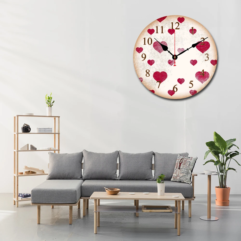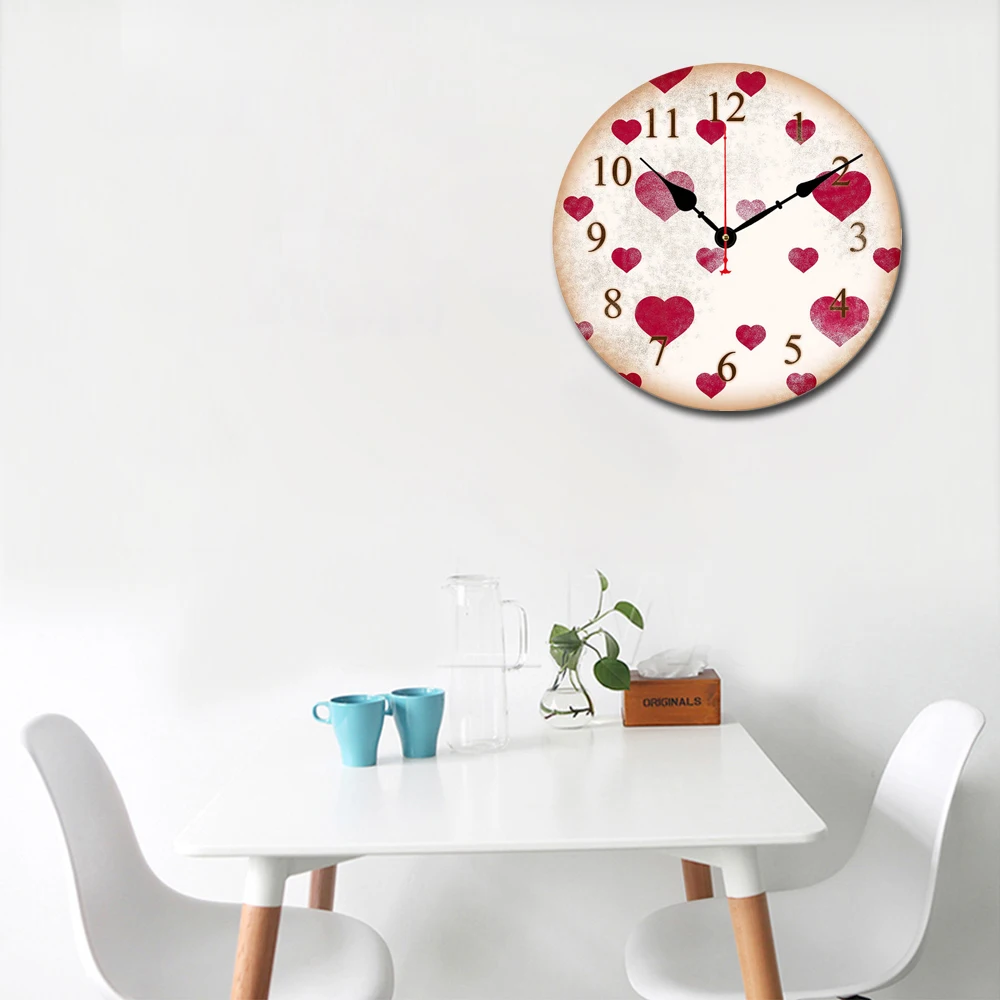 Настенные часы креативные романтические любовь Гостиная Искусство красное сердце круглые деревянные настенные часы большие декорации часы римские цифры