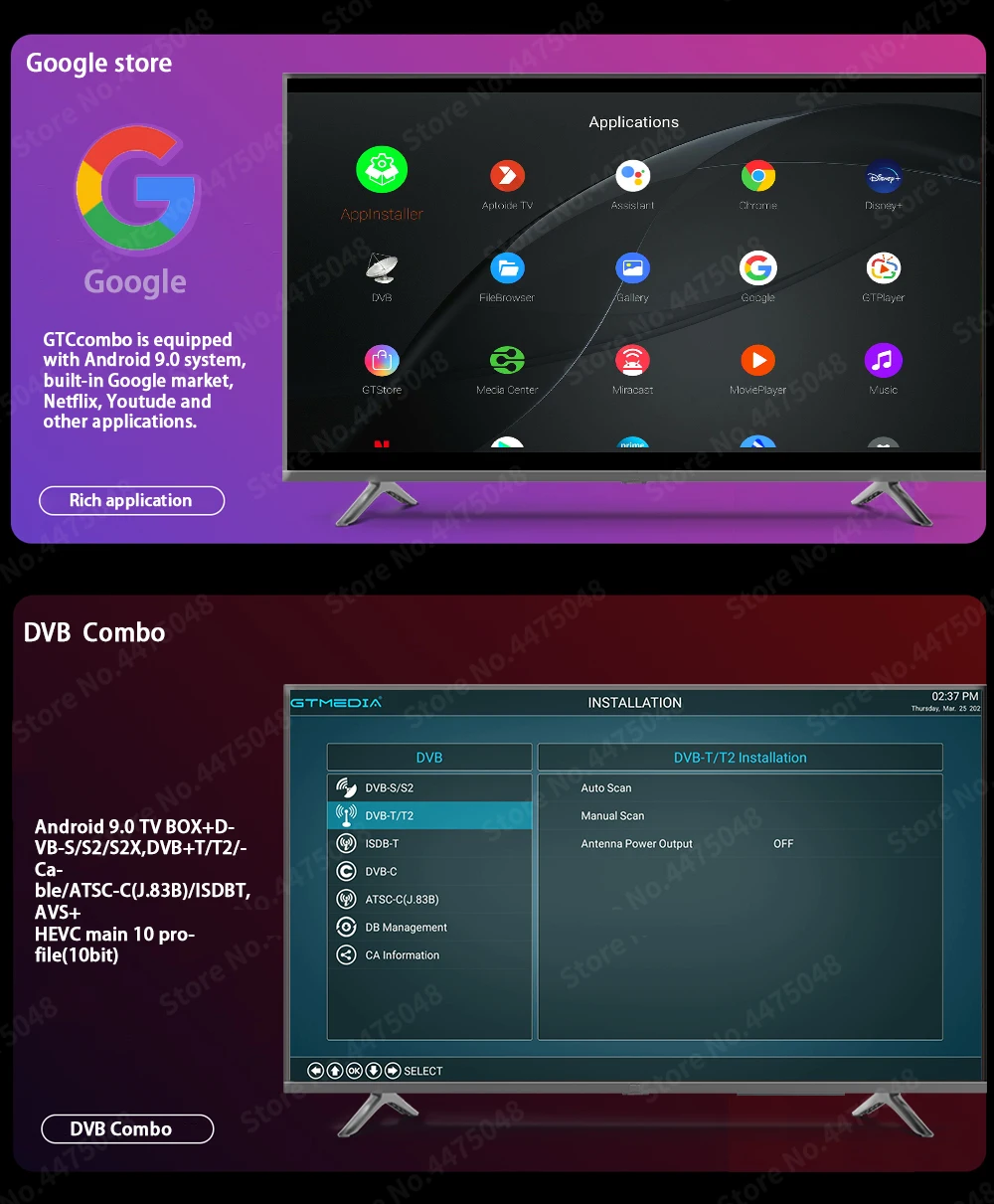 the GTCOMBO updates stable android system, built in Google store, Netflix,YouTude...APK,built in GTPlayer APP, which can install the M3U,Xtream internet TV.