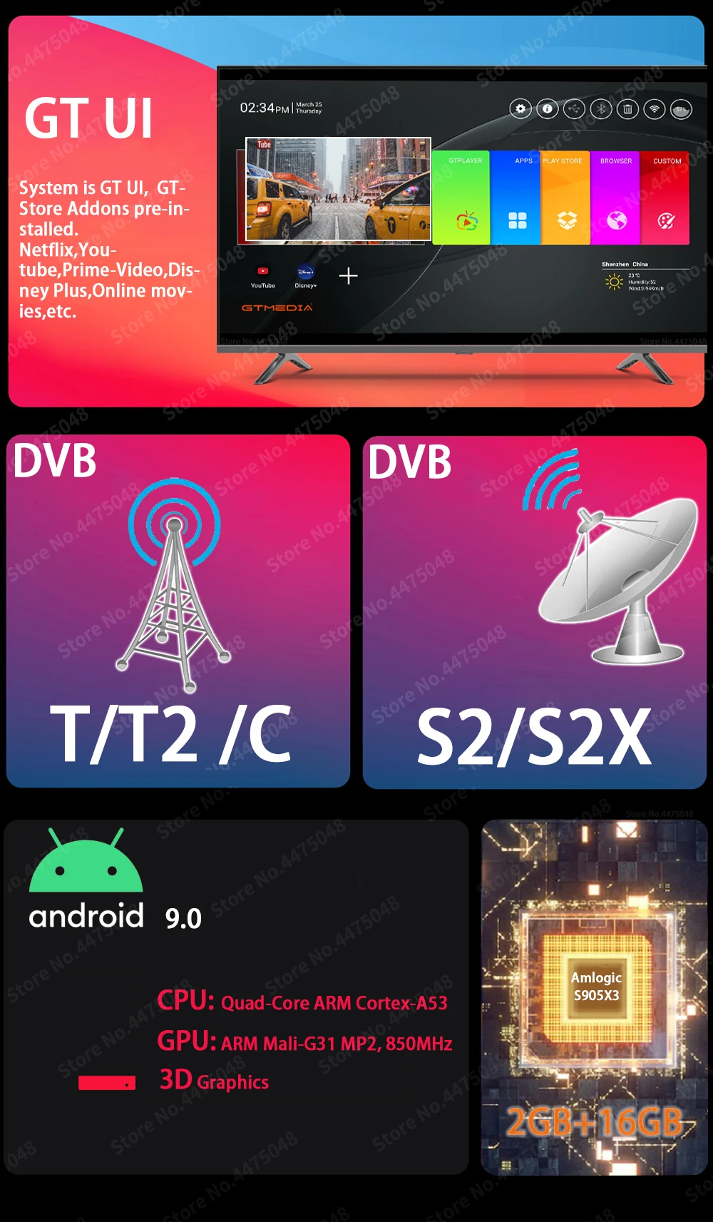 1. Android 9.0 TV BOX+DVB-S2X/T2/C