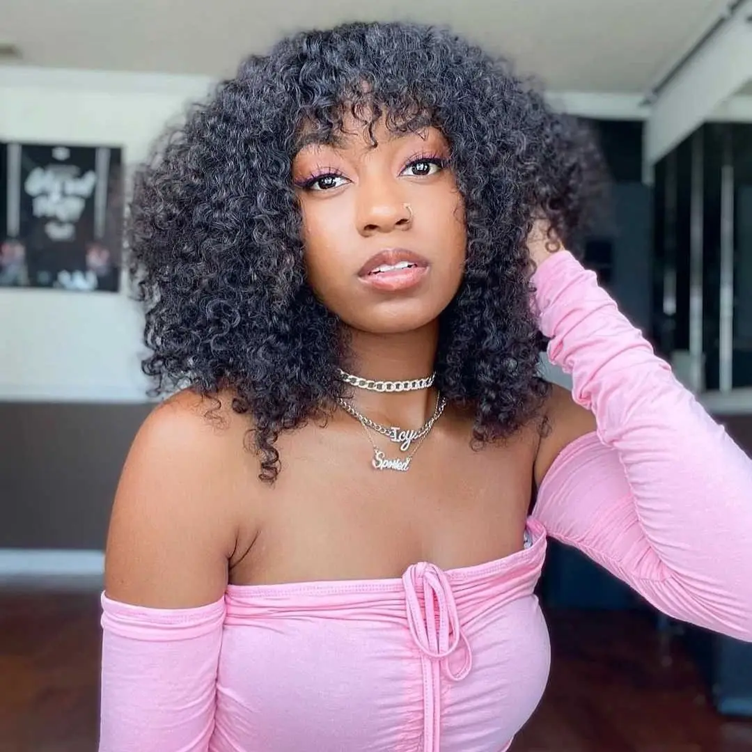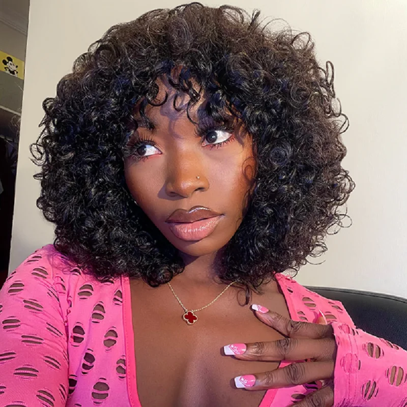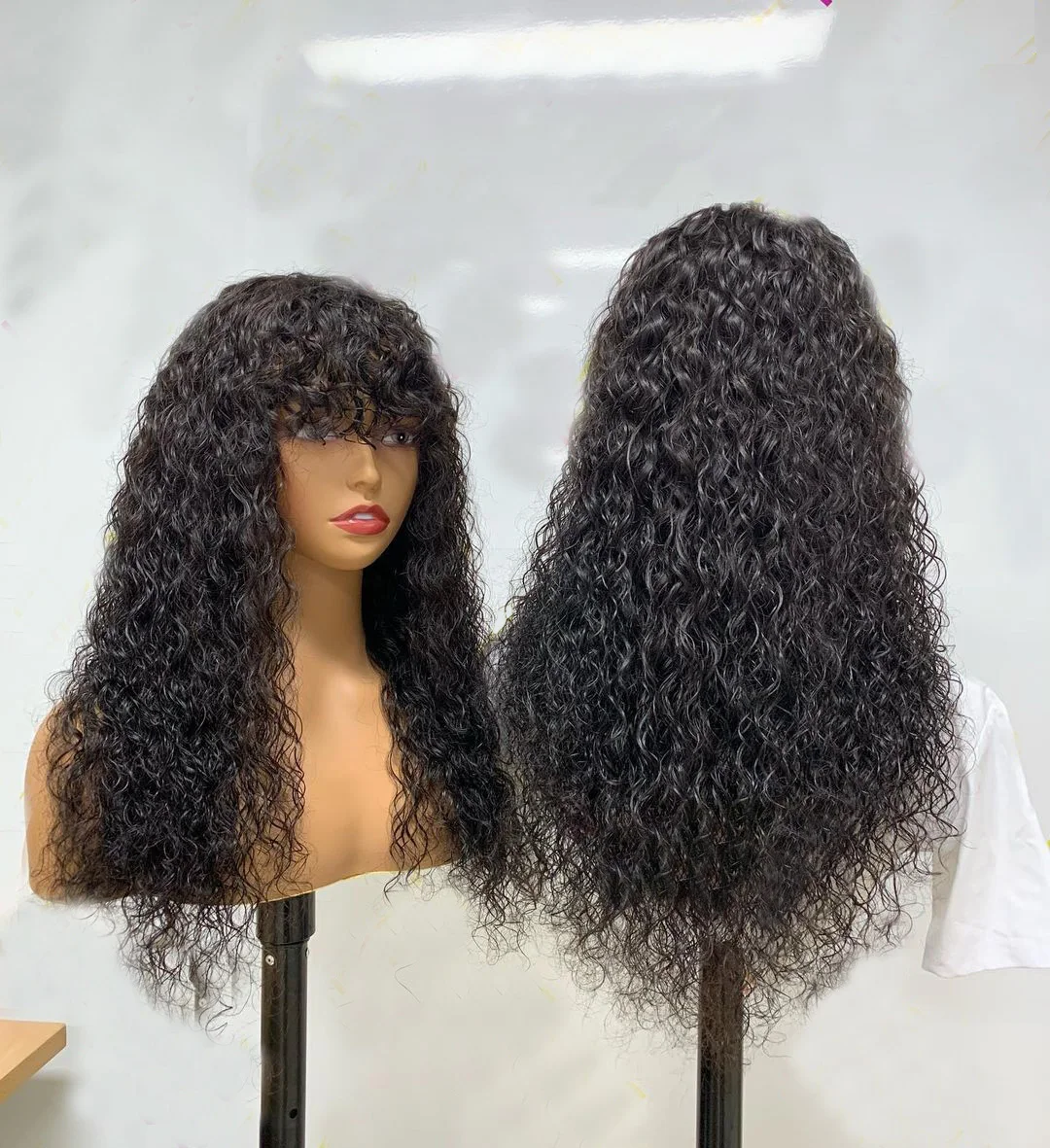 Волнистый парик без клея без шнурка передние человеческие волосы кудрявые парики для женщин предварительно сорванные с челкой Бразильские волосы полный машинный парик