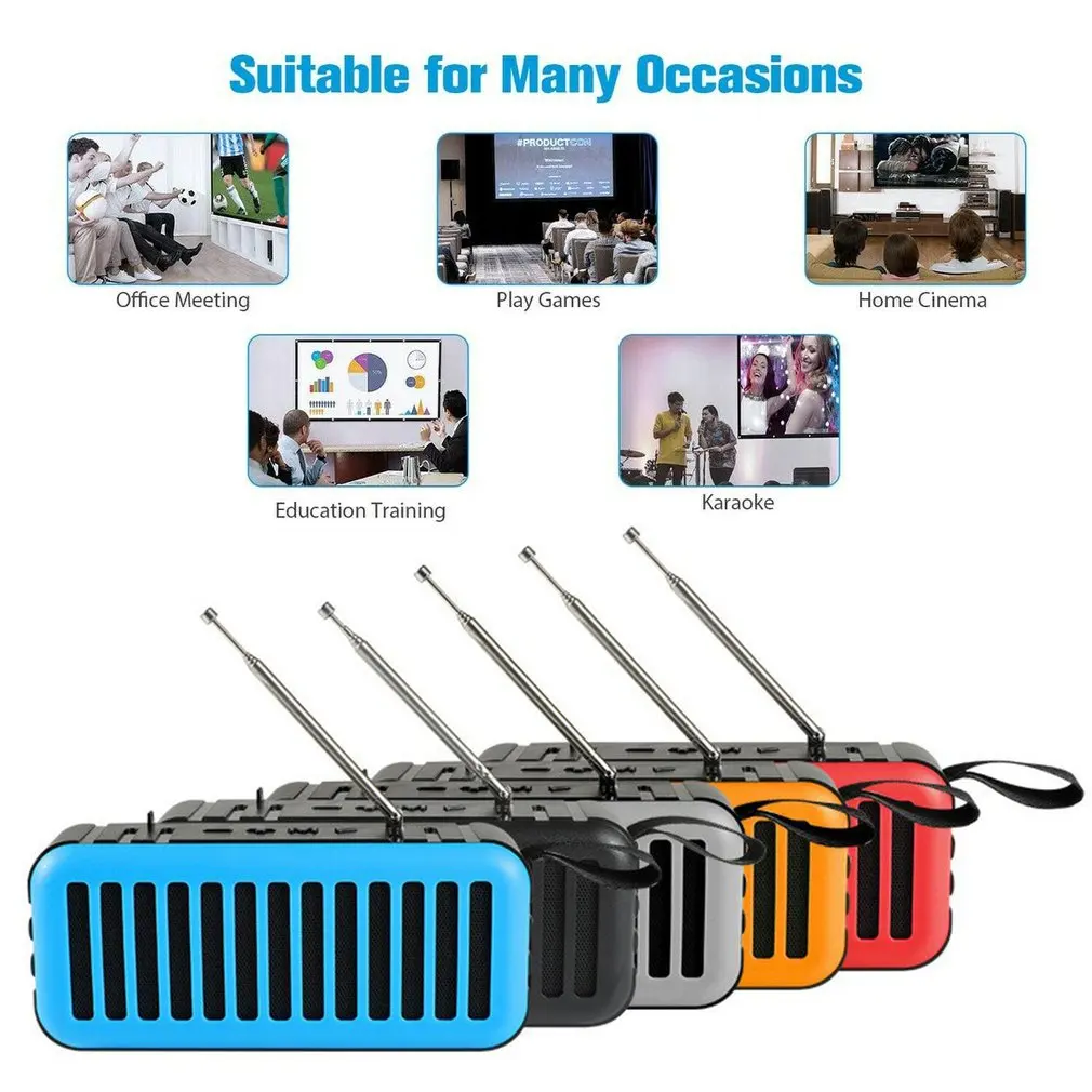 5. Материал: используется высококачественный корпус из АБС-пластика для защиты окружающей среды, с ремешком. Изысканное тело необыкновенно. Легкий портативный динамик.