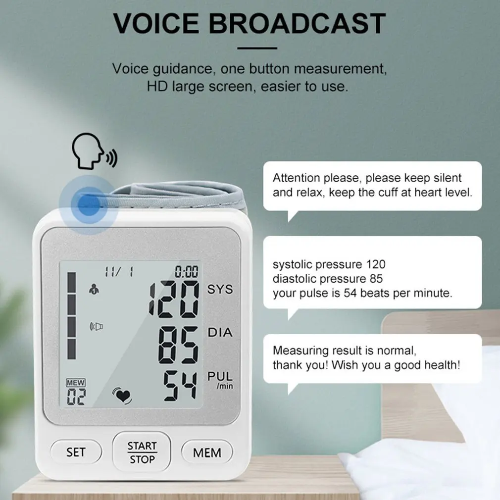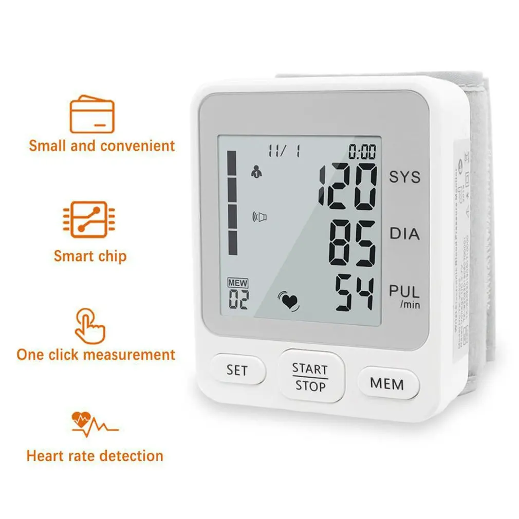 Портативный наручные Монитор крови автоматический измеритель пульса верхней руки артериального давления цифровой Пульс пульса BP сфигмоманометр