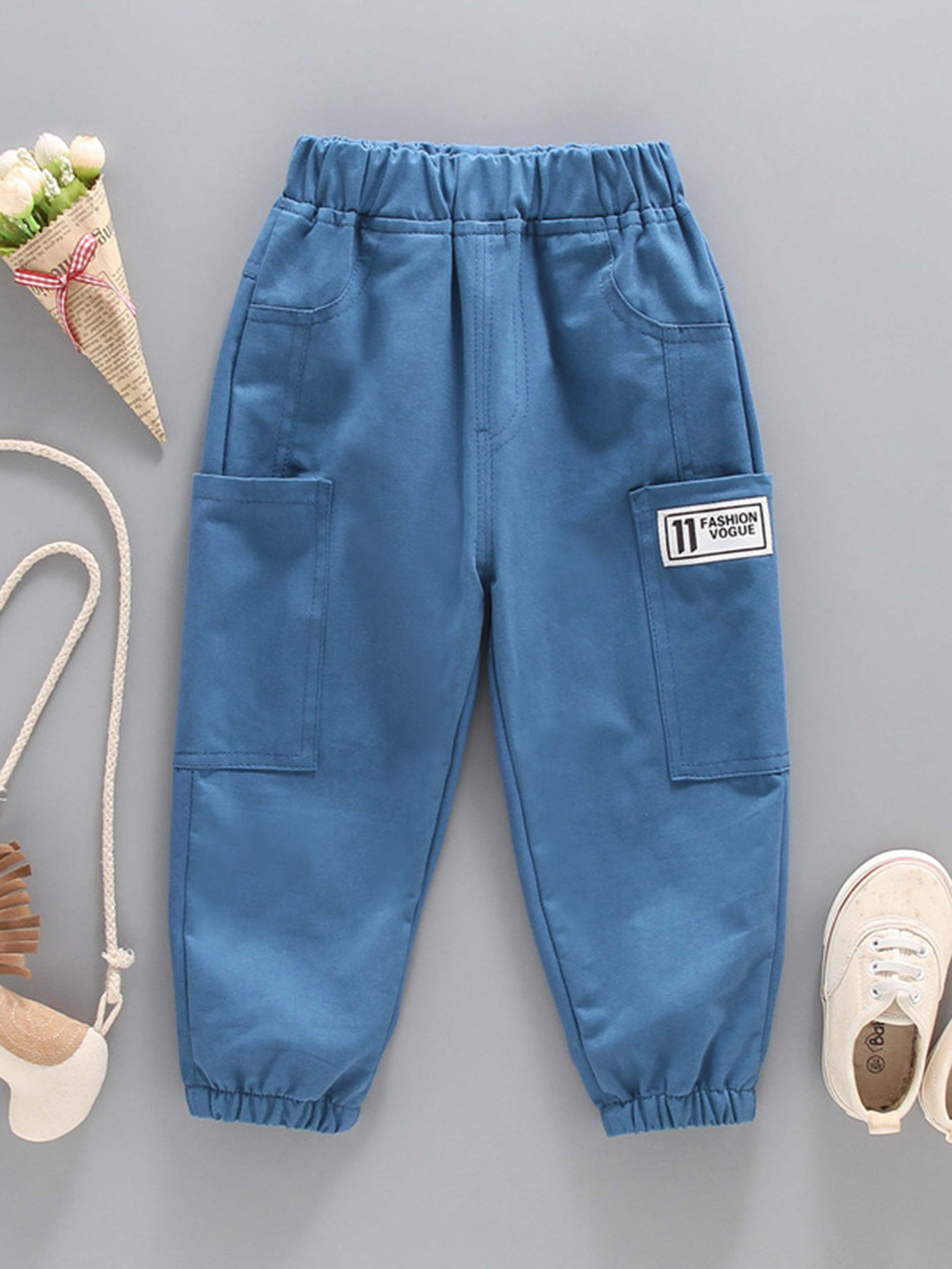 Унисекс; Модное оформление бирок; Однотонные брюки с эластичной резинкой на талии; Брюки для бега с большими карманами для маленьких мальчиков и девочек.