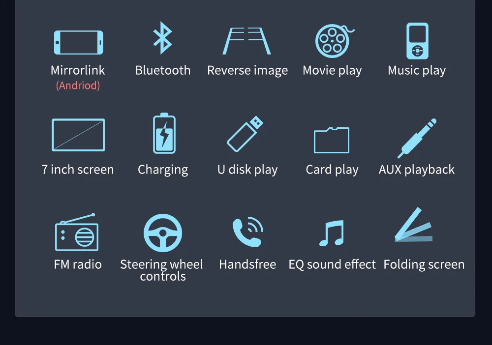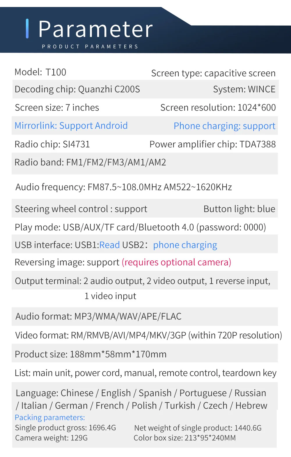 Поддержка Android/ios Mirror Link, встроенный экран может быть синхронизирован через оригинальный USB кабель мобильный телефон, android мобильный телефон может осуществлять двустороннее управление, И ios может распознавать одностороннее управление