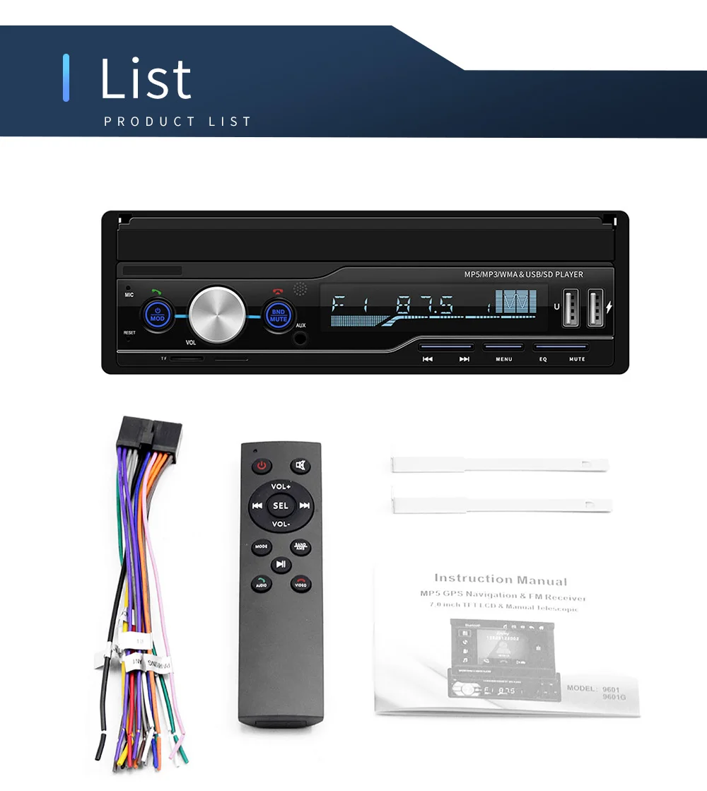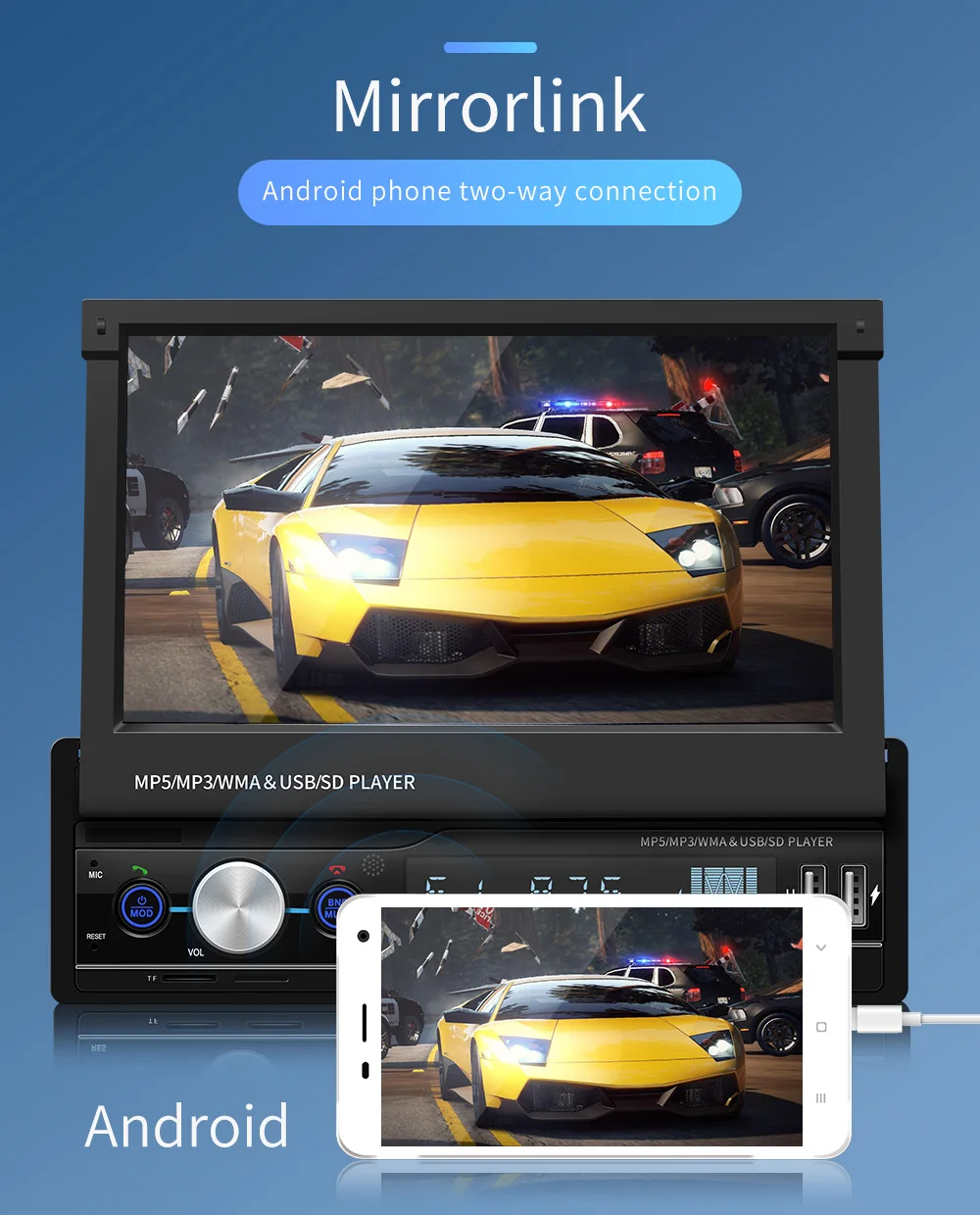 7 дюймов 1din ручной выдвижной сопротивление складной сенсорный экран, Короткие средства ухода за кожей, светильник вес, мгновенный ответ, без задержек
