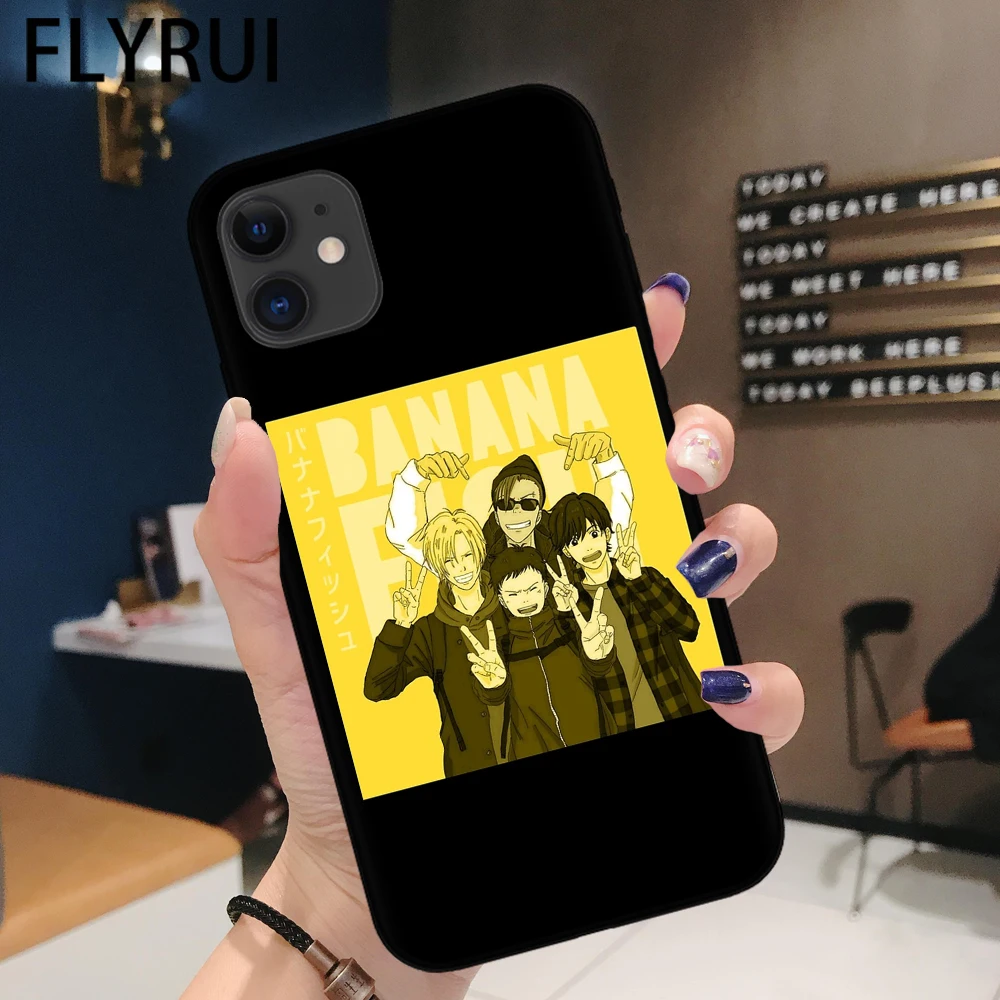 Новый чехол для телефона IPhone 13 12 11 Pro XS Max X XR 6s 7 8 Plus SE2 мягкий силиконовый черный чехол Забавный японский аниме банан рыба чехол
