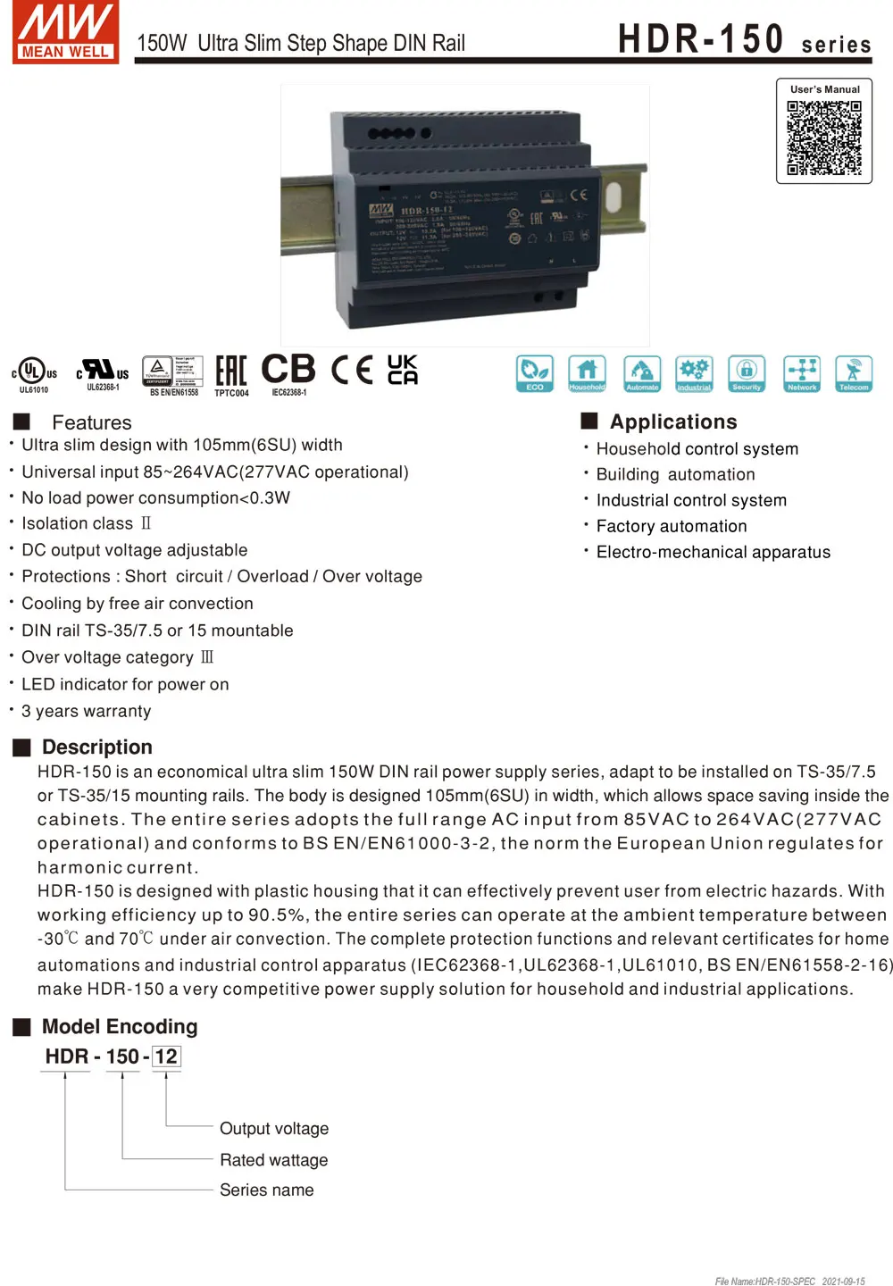Без нагрузки потребеление энергии <0,3 Вт. Класс изоляции II.