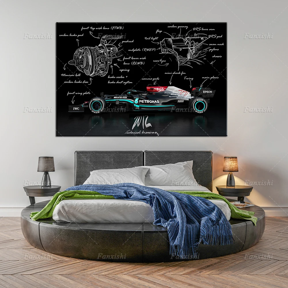 2021 W12 F1 дизайн автомобиля постеры и принты Чемпион настенное Искусство Холст