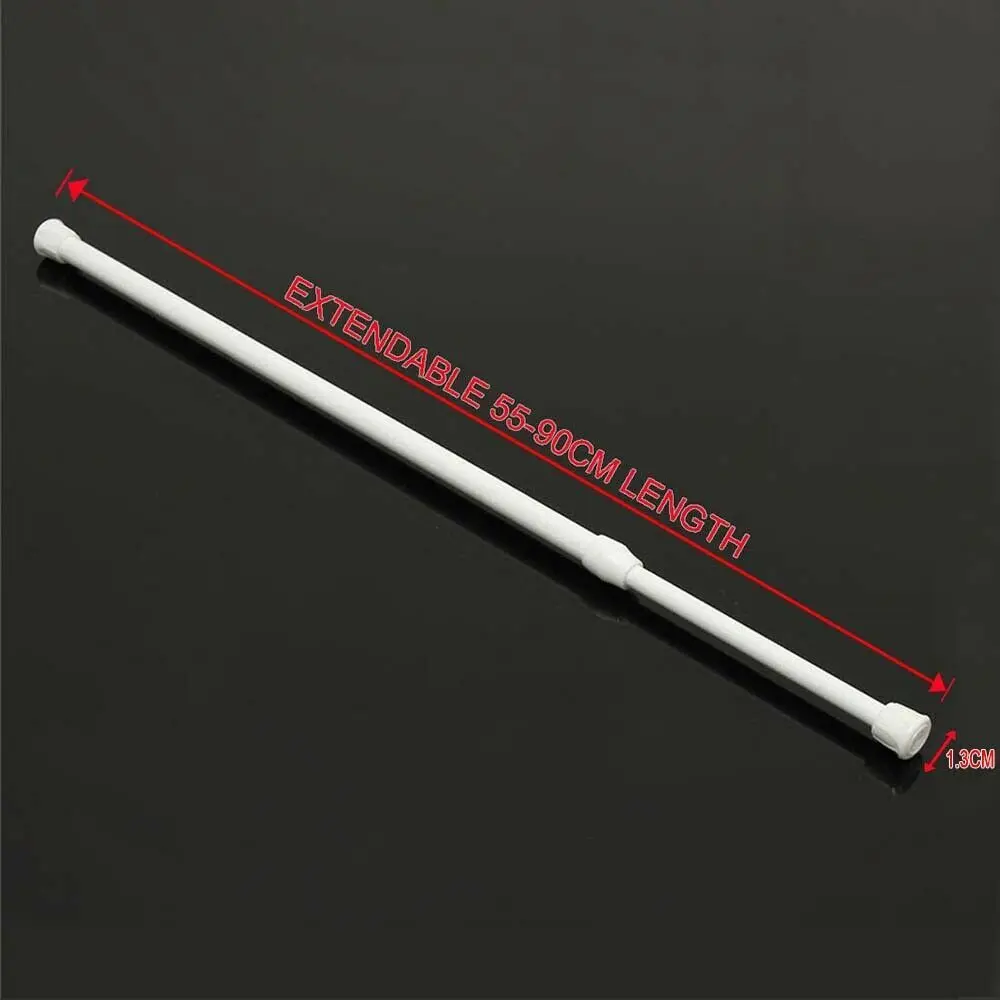 Lightweight, adjustable telescopic rod Easy installation without any tools, no damage to walls or doors and windows Screw head design, more stable and security Can be freely adjusted the length Suitable for hanging shower curtain, curtain, wardrobe, etc Material: Metal(the body)+Plastic(both ends) Diameter: approx 1.3cm Length: 18-27cm/25-40cm/30-50cm/40-70cm/55-90cm/60-110cm telescopic range Capacity: up to 1.5kg Package included: 1Pc* Extendable Rod NOTE: 1. Please allowed 1-3mm differences due to manual measurement, thanks. 2. Due to the difference between different monitors, the picture may not reflect the actual color of the item.