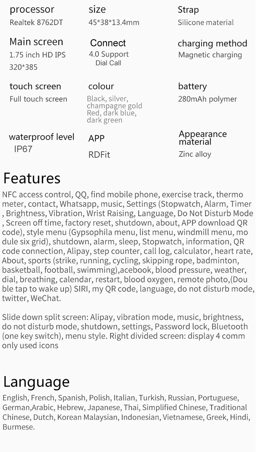 1. NFC этих часов поддерживает только как IC дверные карты с частотой 13,56mnz (применимо к 80% на рынке), не поддерживает другие функции.