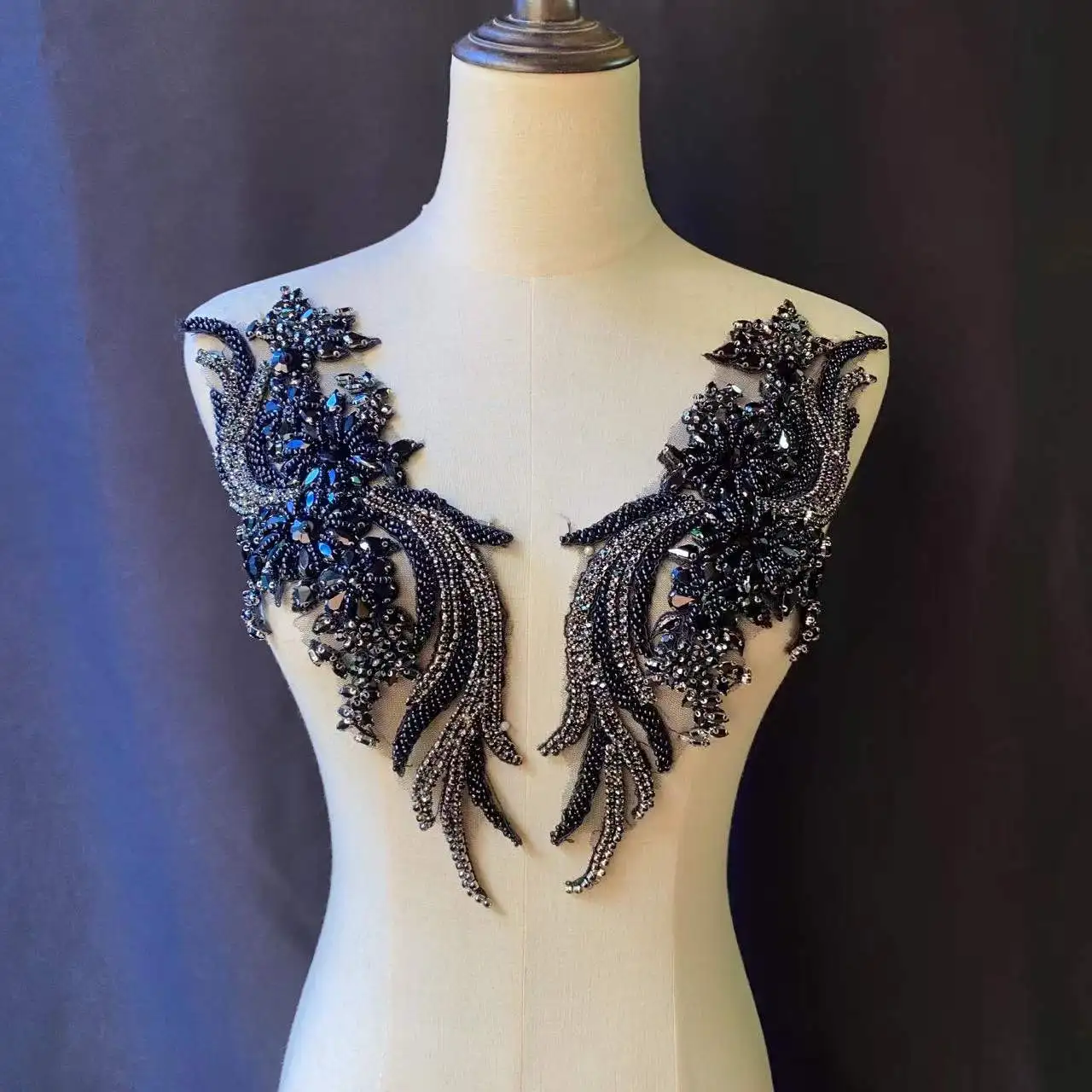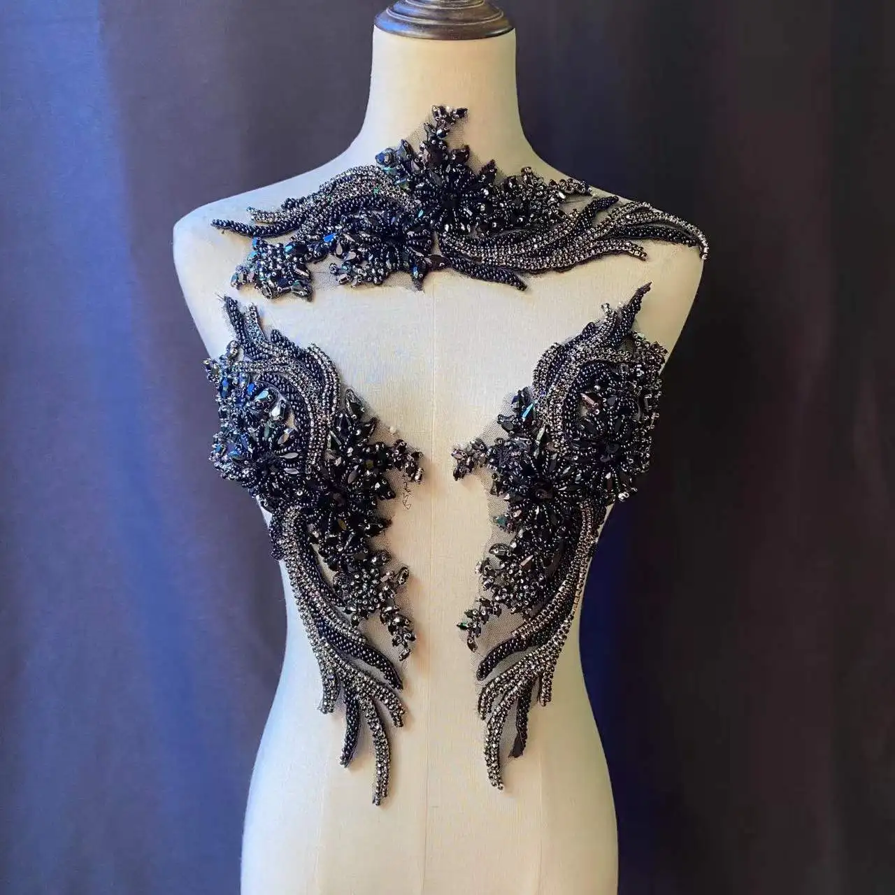 Высококачественная Хрустальная черная французская Аппликация из бисера, тяжелая нашивка на лифе со стразами для Кутюра, танцевальный костюм, праздничные атрибуты.
