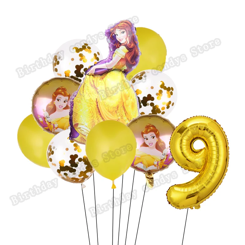 7 шт., Disney Princess Beauty and the beast, фольга, воздушный шар с номером, латексные шары для малышей 1, 2, 3 года, декор для дня рождения, детские игрушки, Globos