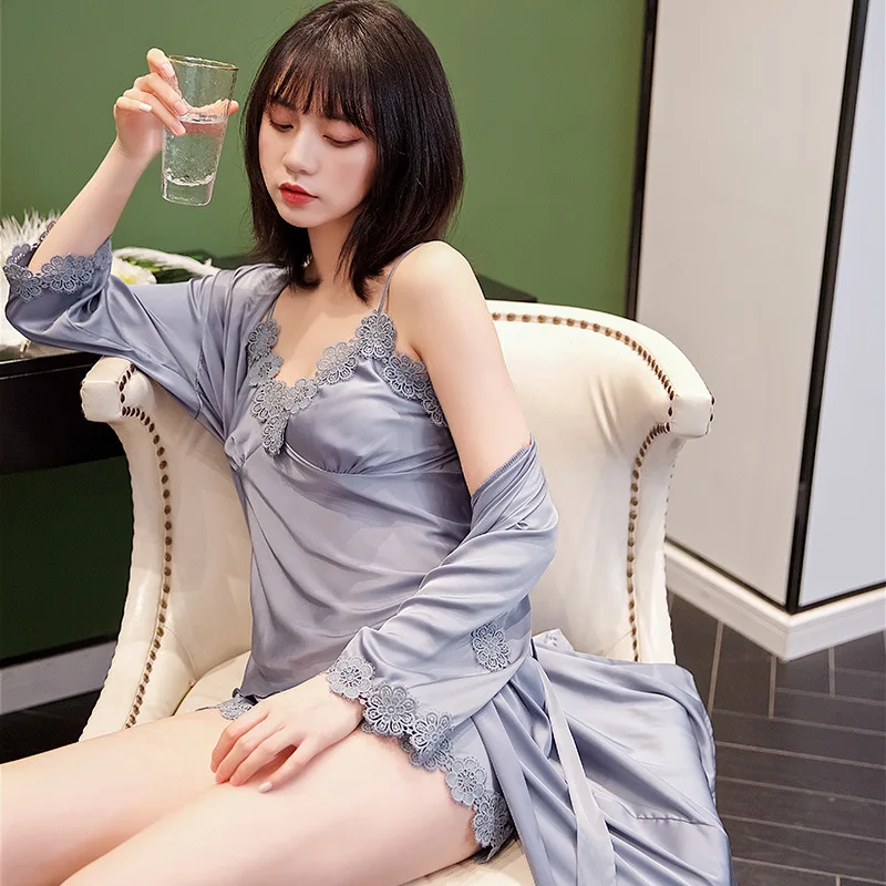 Женские шелковые халаты с цветочным принтом Материал: полиэстер Подушечка Для Груди: Да Рукав: ремешок на спагетти Размер: M, L, XL,XXL