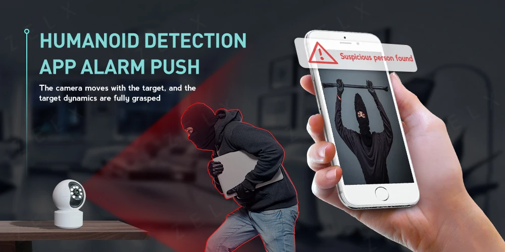 * Когда вор прибудет в зону наблюдения, камера отправит push-уведомления на ваш мобильный телефон.