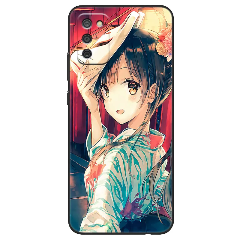 Аниме девушка Япония искусство Милый силиконПЧехол для Samsung Galaxy A03S A02S A01 A03 Core A10S A20S A20E A30 A40 A41 A6 A7 A9 A8 + 2018 A5 2017Черный чехол-накладка