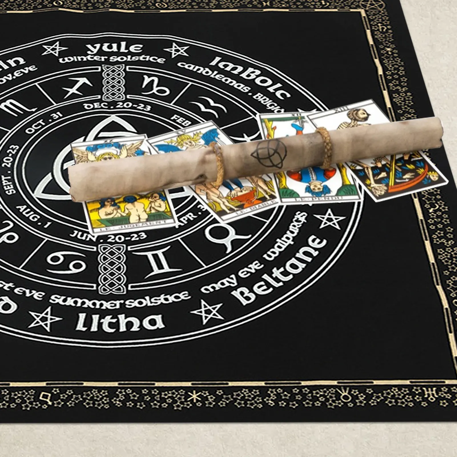 Высококачественная Флокированная тканевая скатерть AltarTarot с колесами для трикетов и 12 созвездий