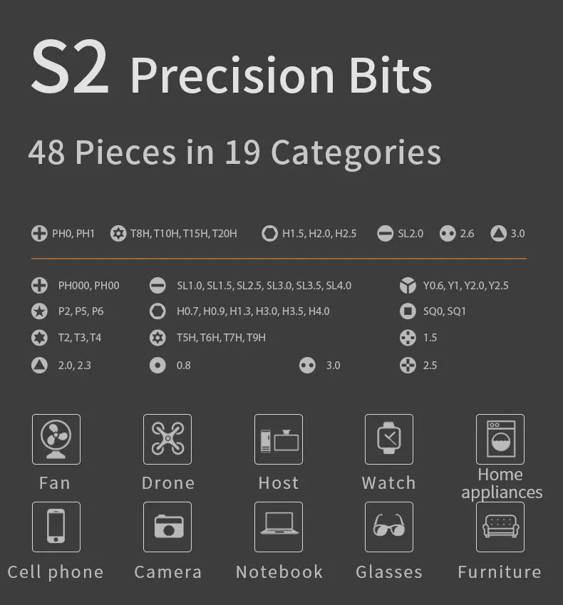 ☆ P2(Pentalobe 0,8),☆ P5(Pentalobe 1,2)