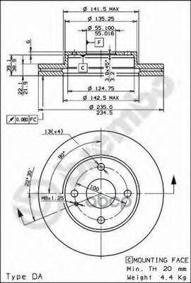 Диск Торм. Пер.Вент.[235x22] 4 Отв. Mazda 323 F 1,3-1,8 6/89-4/94