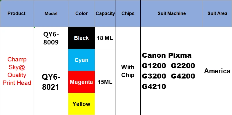 Небесное качество печатающая головка QY6-8009 QY6-8021 / BH-20 CH-20 для Canon Pixma G1200 G2200 G3200 G4200 G4210 и т. Д. Принтер [Северная Америка]