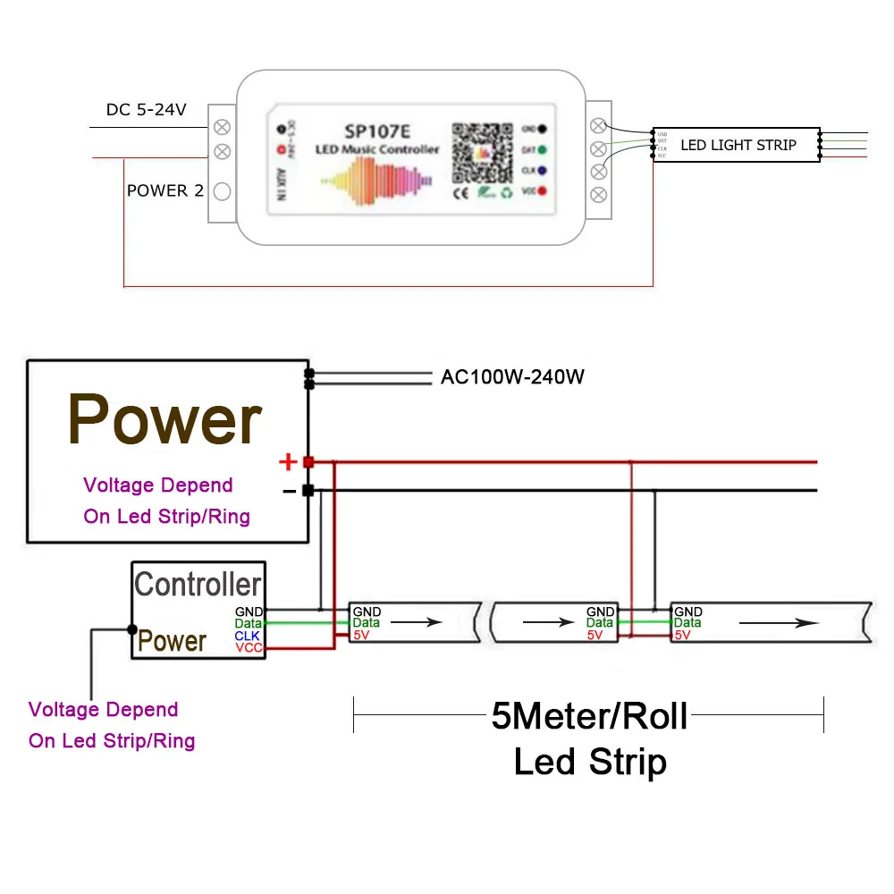 1x SP107E музыкальный светодиодный контроллер