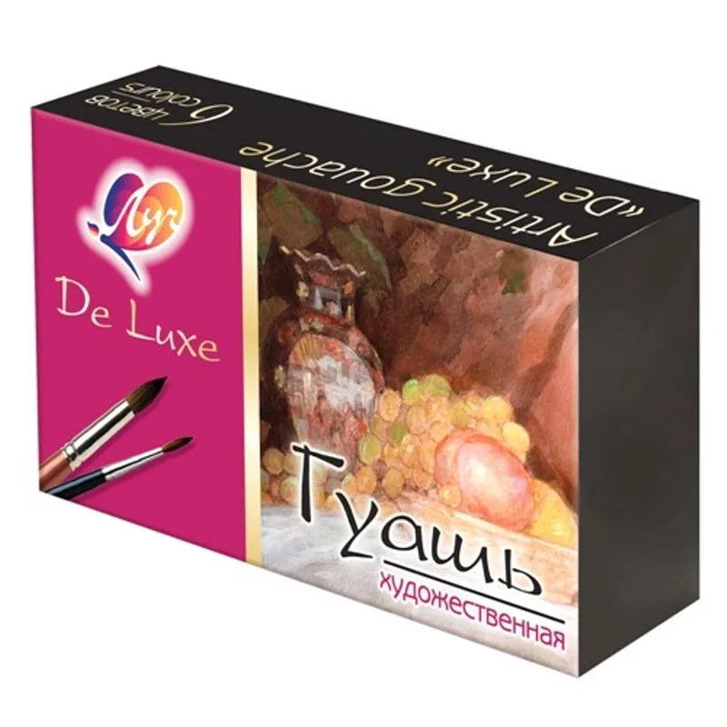 Гуашь Люкс Луч 6 цв., 20 мл, 14С 1037-08 Гуашь ?Луч. Люкс? предназначена для детского творчества, выполнения художественно-декоративных работ. Краски изготовлены на основе натуральных компонентов и высококачественных пигментов. Обладают хорошей кроющей способностью и чистотой цвета. Гуашь находится в пластиковых герметичных баночках с завинчивающейся крышкой. В набор входит 6 цветов: белила титановые, желтый, алый, зеленый светлый, ультрамарин, черный. Краски упакованы в цветную картонную коробку, размер упаковки (ДxШxВ): 120x80x38 мм. Объем одной баночки - 20 мл. Поставляется без кисти.