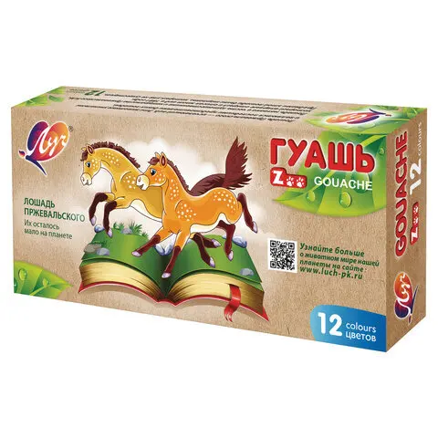 Гуашь предназначена для детского творчества, выполнения художественно-декоративных, оформительских работ. Краски изготовлены на основе натуральных компонентов, отличаются насыщенностью, чистотой цвета и хорошей кроющей способностью.Количество цветов в наборе: 12 шт.. Серия: Zoo. Объем баночки: 15 мл. Общий объем: 180 мл. Тара: блок-тара. Упаковка: картонная коробка Бренд - ЛУЧ. Производитель - Россия.