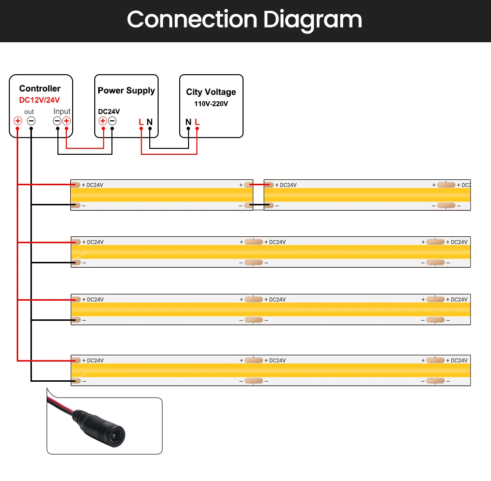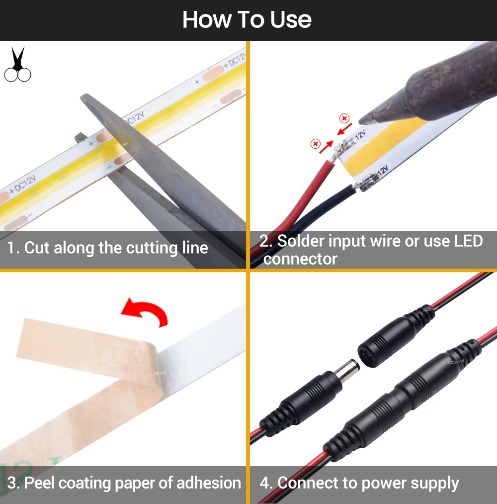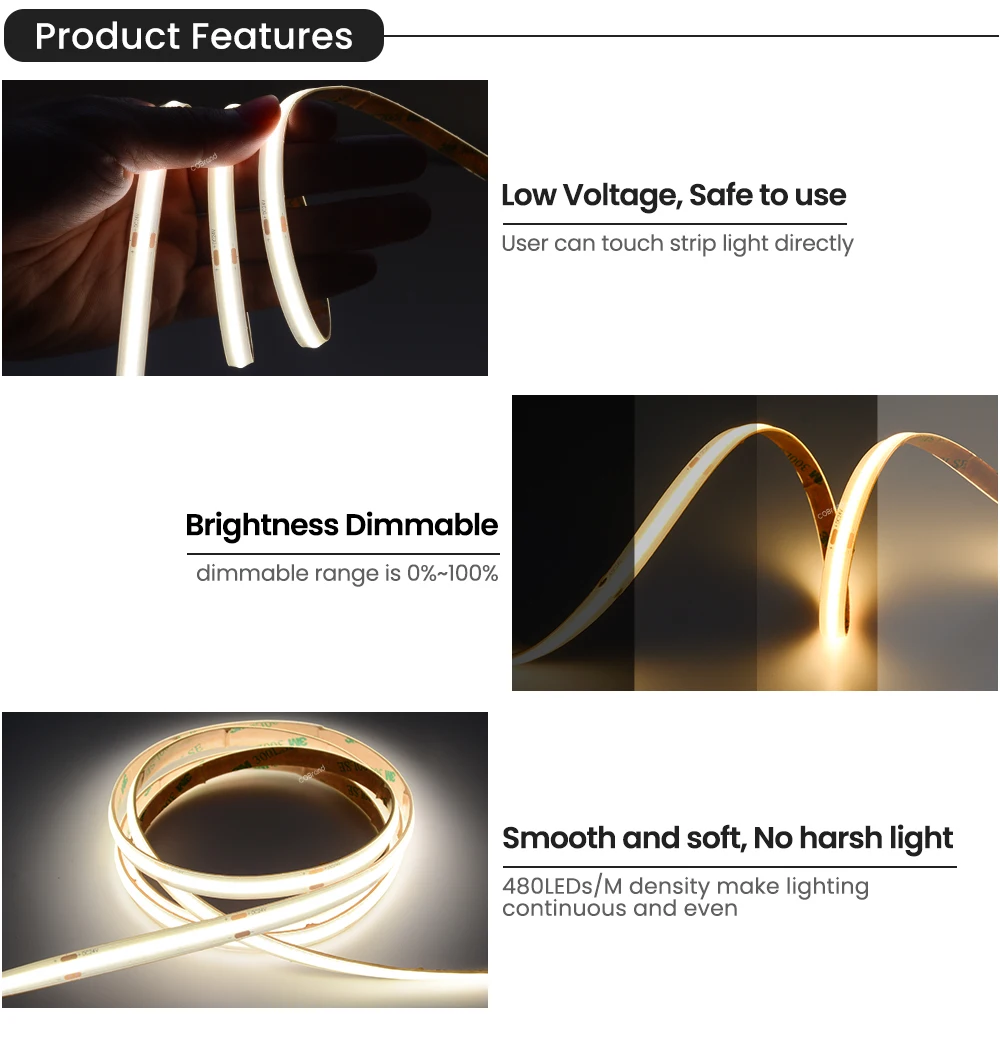 DC12V/24V COB Светодиодные ленты 5 м/рулон 8 мм на открытом воздухе Водонепроницаемый IP65 480 Светодиоды высокой плотности гибкие с блоком питания постоянного тока для головы для Кухня вешалка для одежды