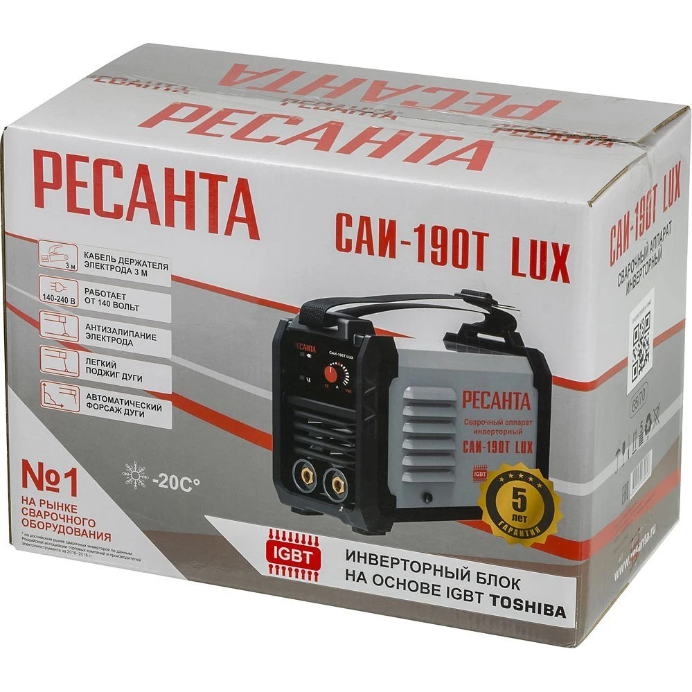 Welding inverter machine resanta sai-190t Lux-designed for manual arc welding with one-piece coated electrode on a constant current and an electrode with an electric motor. This series of welding machines is designed on the basis of IGBT transistor Toshiba.