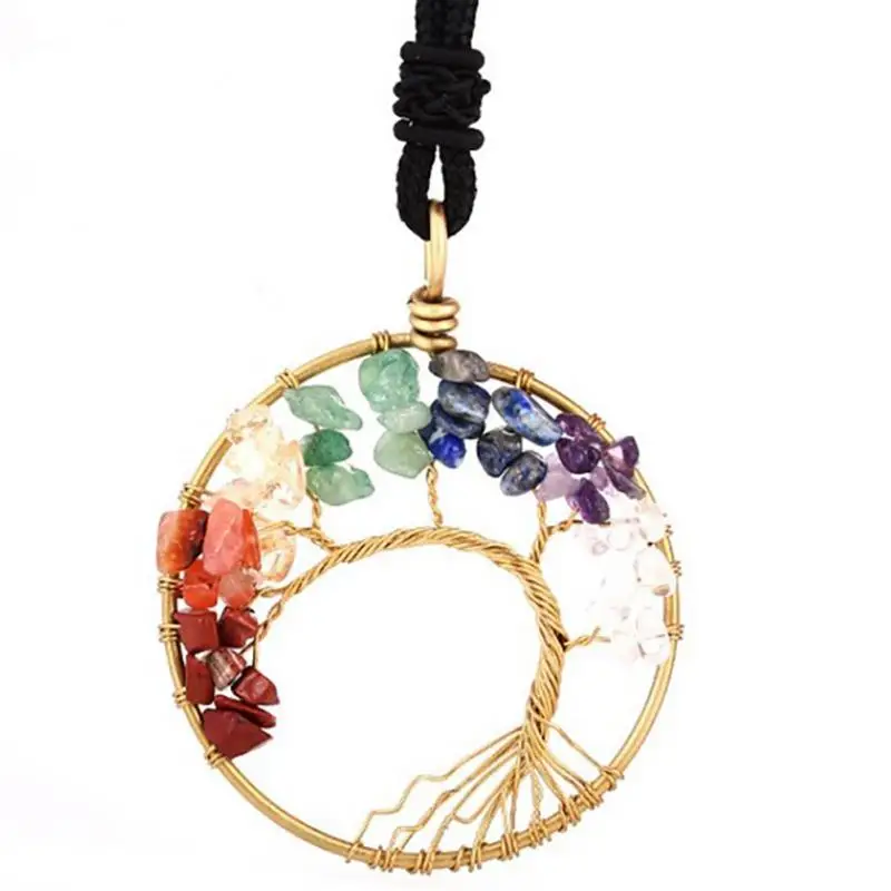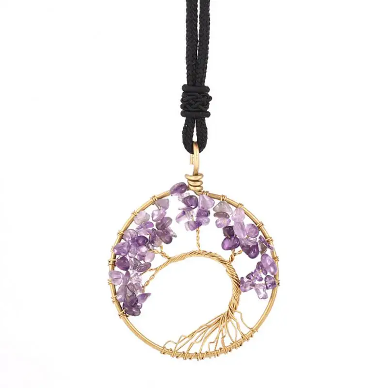 Красивые узоры: Круглый Древо жизни с крошечными Кристаллами Кварца, чакра драгоценный камень медной проволоки намотки ожерелье и кварцевые намотки медного дерева жизни, Есть много цветов минералов, каждый узор может легко сочетаться с вашей одеждой