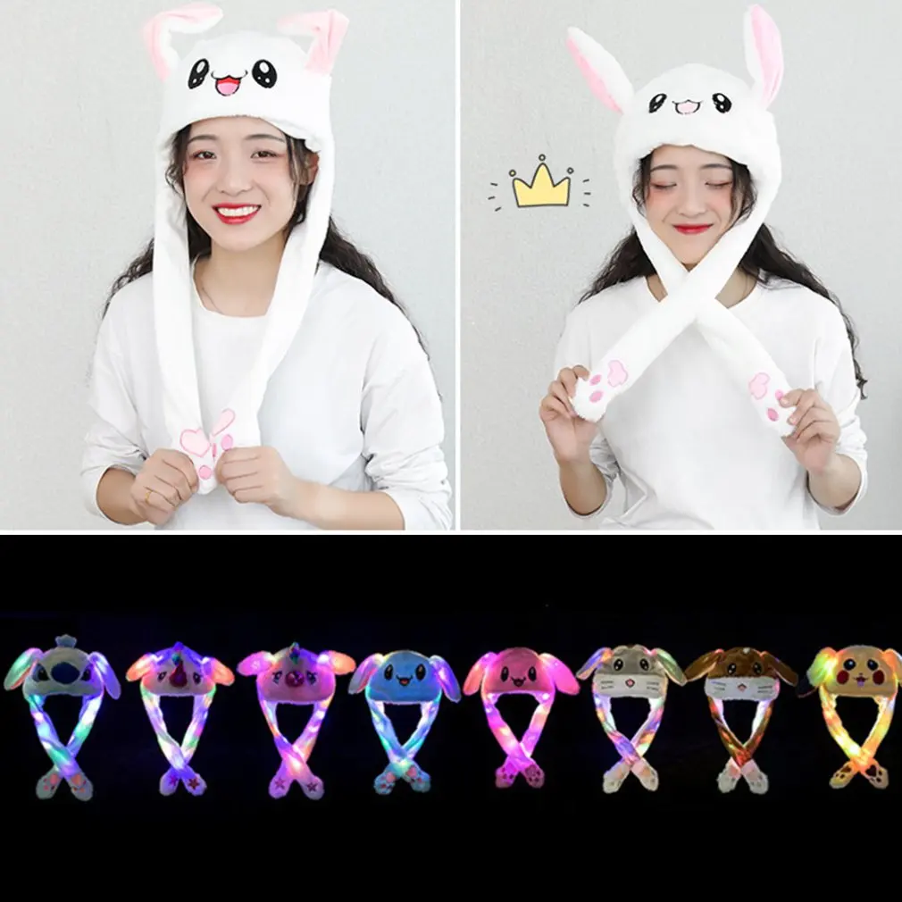 1pcs Kawaii Plush LED Glowing Rabbit Ears Hat Lovely Luminous Kids Adult Plush Hand Pinch Cap Moving Ears Hat With Earflap Gifts
