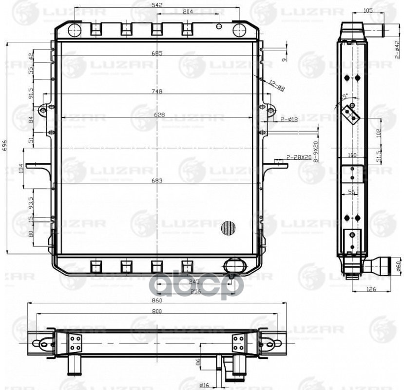 Lrc1225_радиатор Охлаждения Al, 628x696x56мм, Ан.54325-1301010 Маз С Дв.Ямз-236