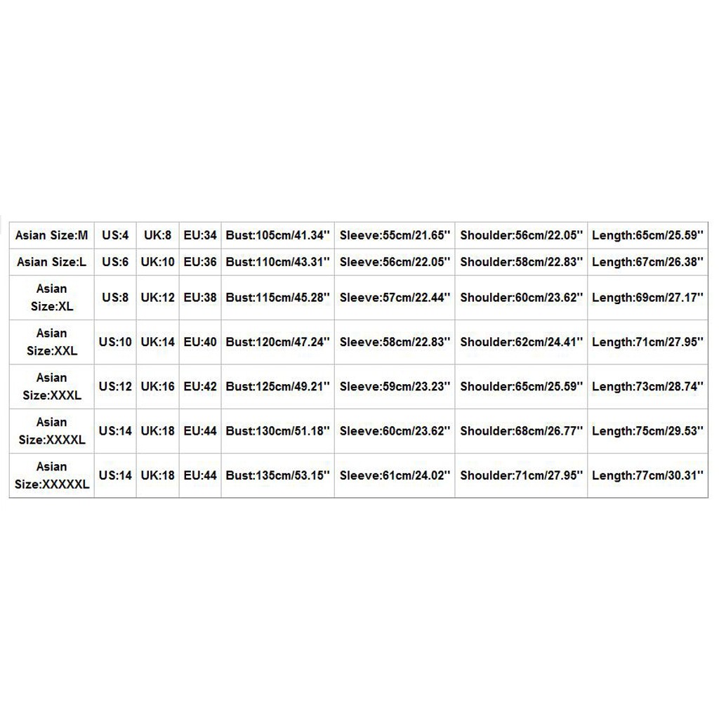 | Азиатский размер | США | Великобритания | ЕС | Бюст | Рукав | Плечо | Длина |