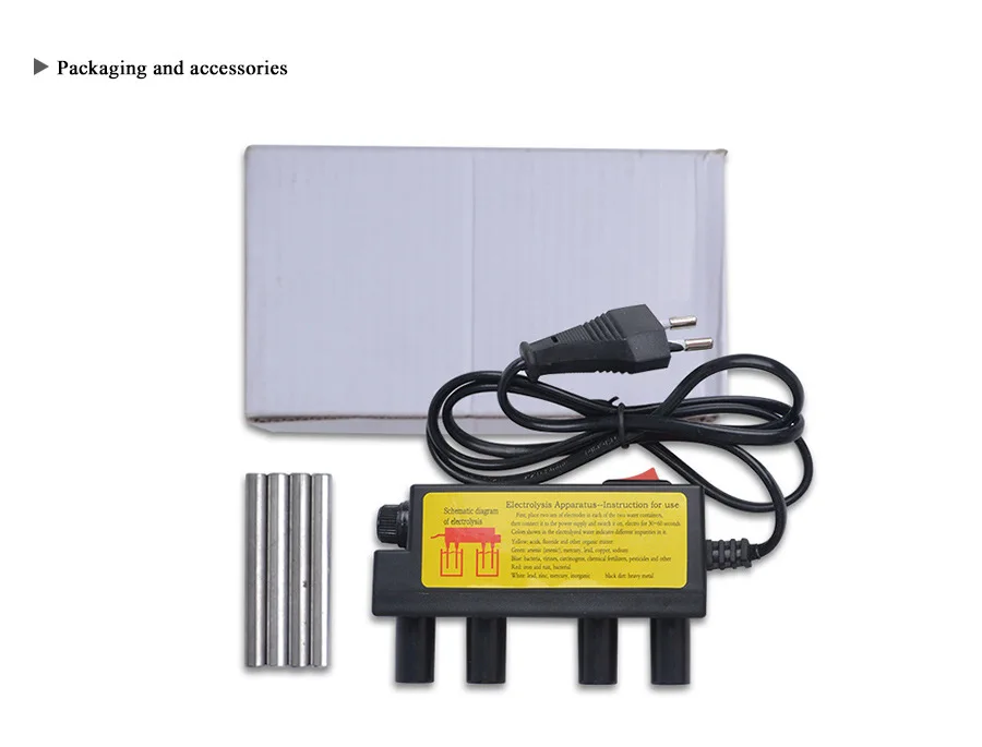 После включения питания не держите руки на электродах; Не кладите пальцы в тестовую воду; Не позволяйте детям играть с электролизором. После того, как электролизер используется, используйте сухую ткань, чтобы вытереть электрод сухим, и протрите воду на Железном столбе тонкой марлевой тканью и держите его в безопасном месте.