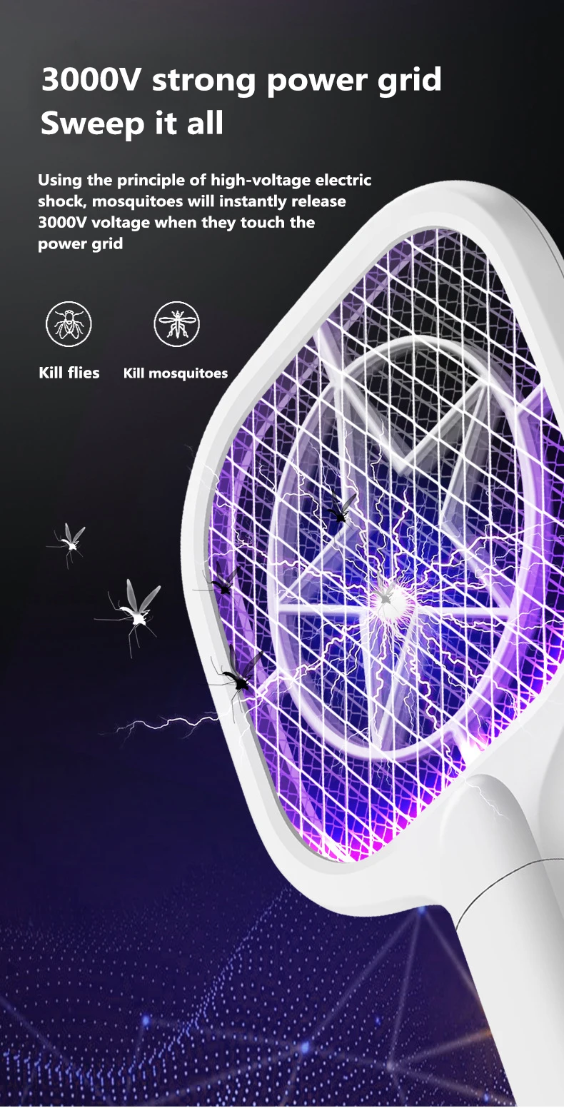 В этой электронной мухобойке чисто физическим способом используется высоковольтный принцип поражения электрическим током, чтобы убить комара. Когда комар контактирует с сеткой, мгновенно высвобождает напряжение до 3000 В, он мгновенно, быстро и эффективно убивает комара.