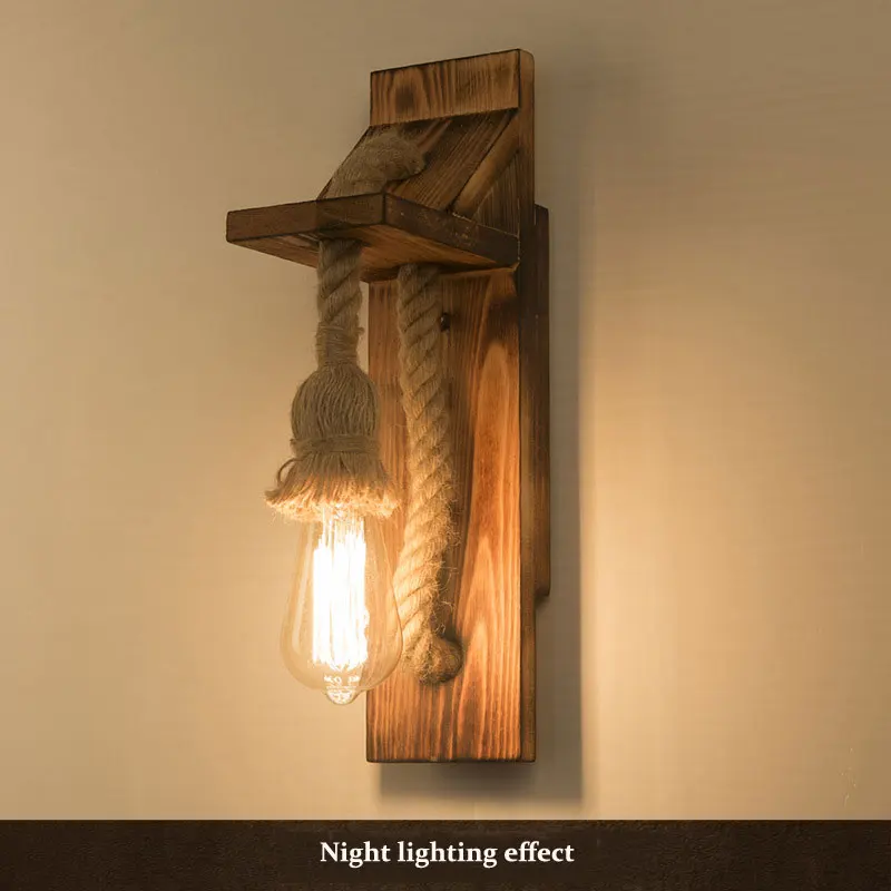 Американский Ретро деревянный художественный настенный светильник из пеньковой веревки для ресторана, кофейни, бара, настольная лампа, промышленный ветер, коридор, декоративная лампа, бюстгальтер