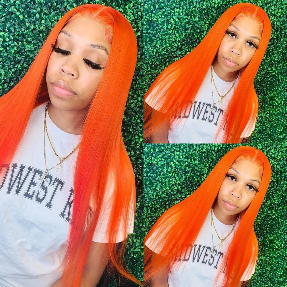 Kryssma, прямой парик с кружевом спереди, синтетический, средняя часть, оранжевый парик с натуральными волосами младенца, без клея, термостойкий парик с закрытием
