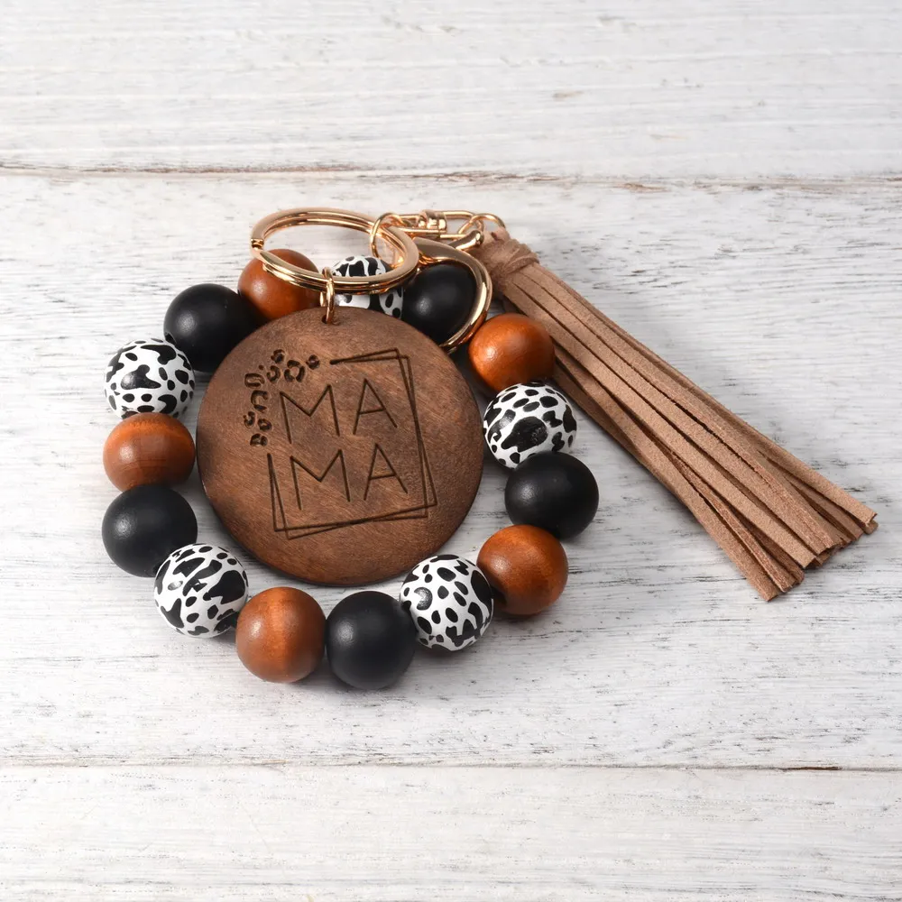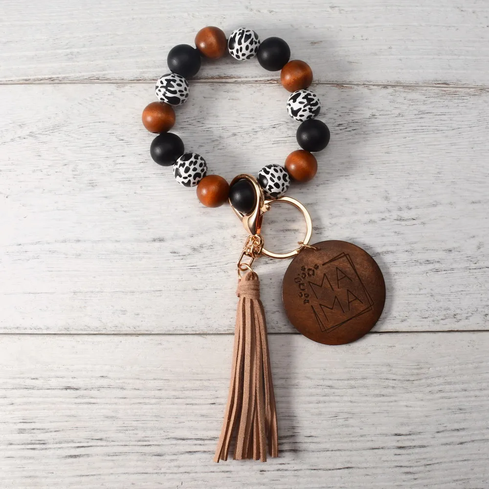 Новый MAMA браслет, брелок для женщин, Сумка с кисточкой, подвеска, аксессуар с леопардовым принтом, силиконовый бисерный брелок, подарок на день матери