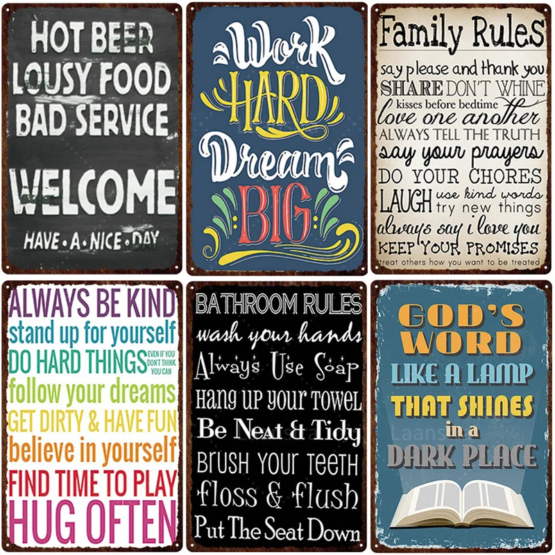 Винтажные оловянные знаки постер Семейные Правила помочь друг другу фотографии настенные декорации искусство меня...Купить сейчас